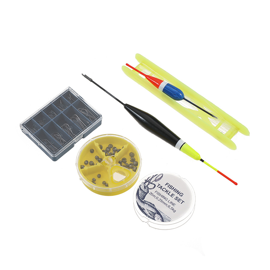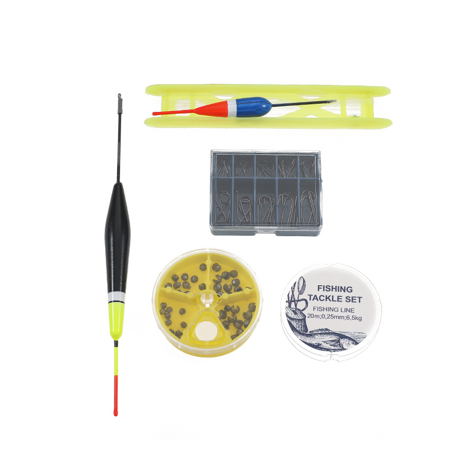 Juego de equipo de pesca, anzuelo de plomo, cebos, anzuelos, tabla de bobinado, accesorios de pesca, kit de flotador flotante