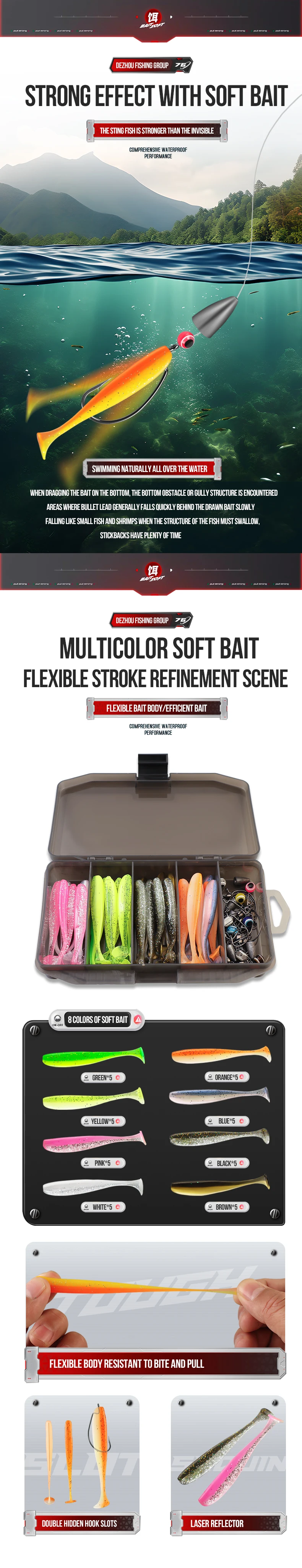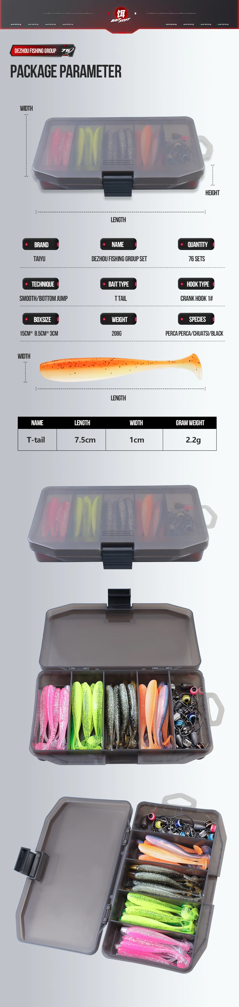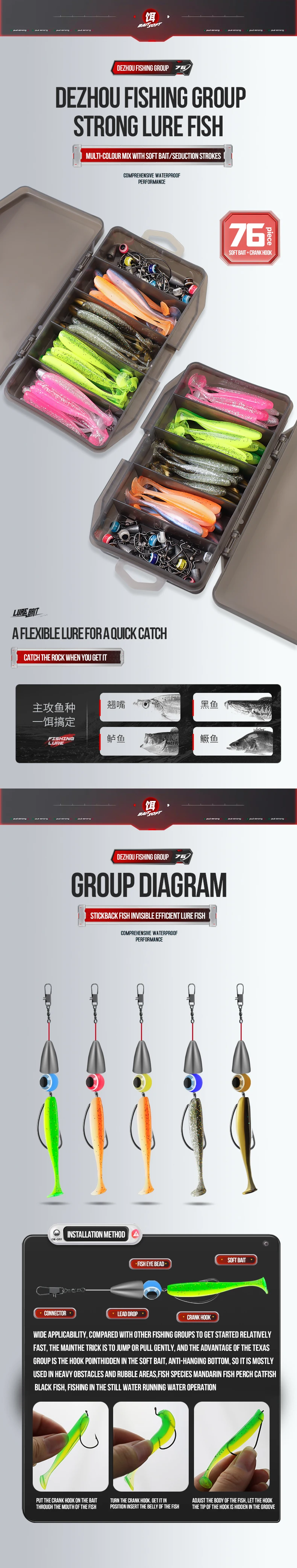Juego de equipo de pesca de cebo blando para peces biónicos, con caja de gancho de almacenamiento, equipo de pesca suave y portátil para exteriores, 76 Uds.