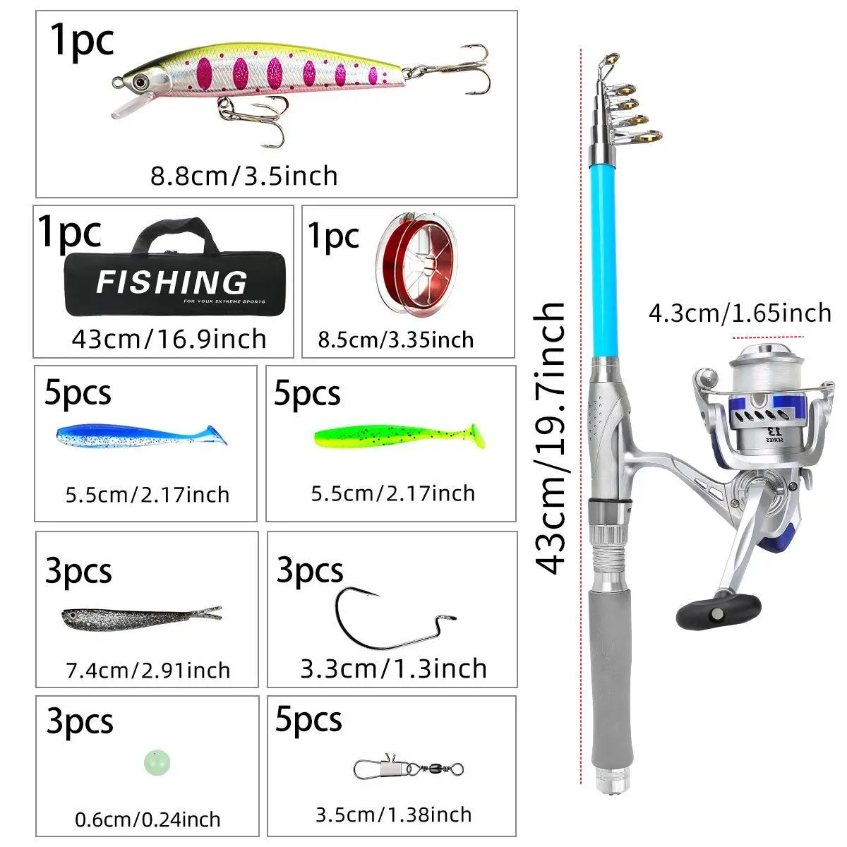 1.Juego de equipo de pesca Luya, juego completo de rueda de caña de pescar Luya Haiku de lanzamiento largo, cebo suave, línea de anzuelo Mino