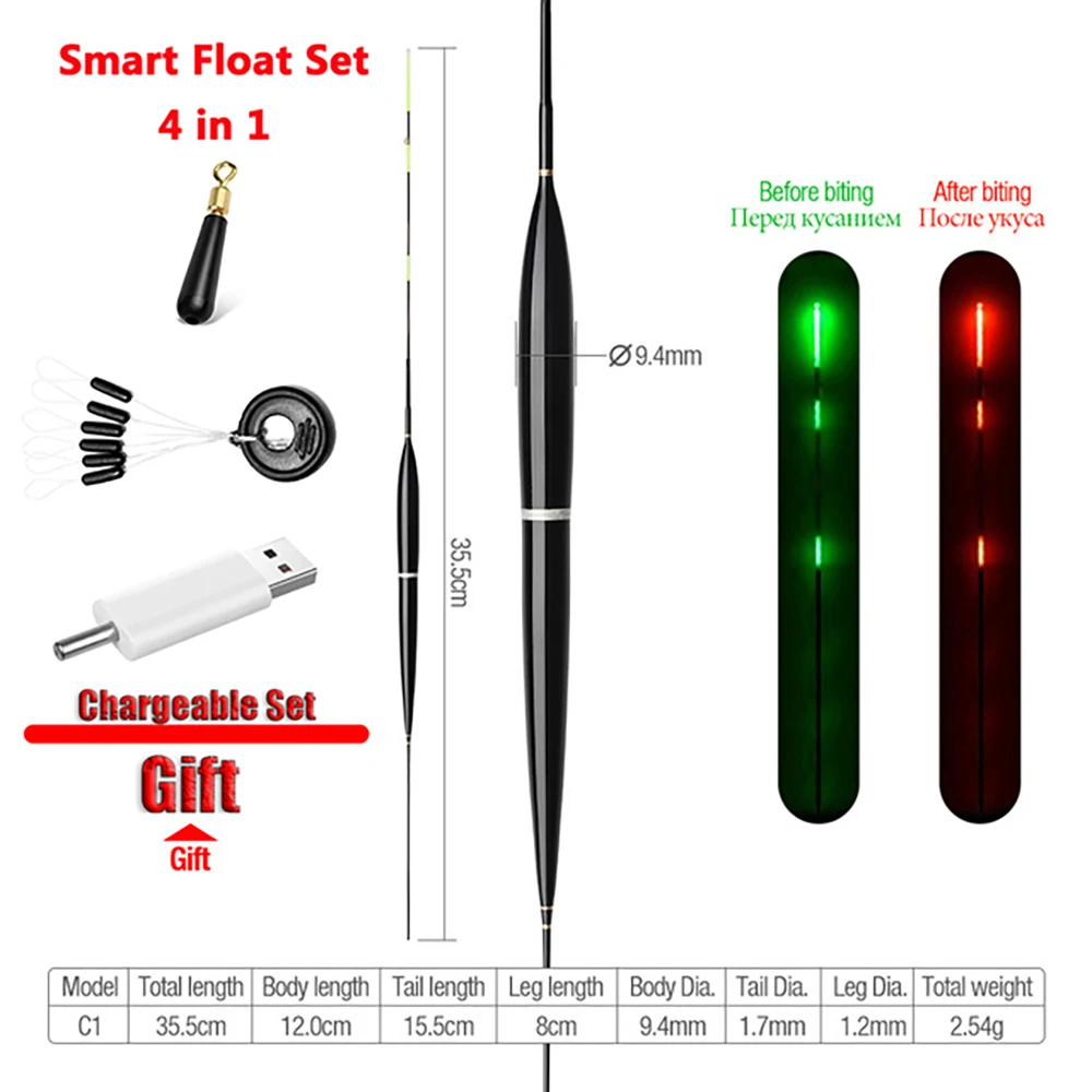 1 flotador de pez inteligente + 1 cargador USB de un solo orificio + 1 batería + un juego de frijoles espaciales + 1 Conector de flotador