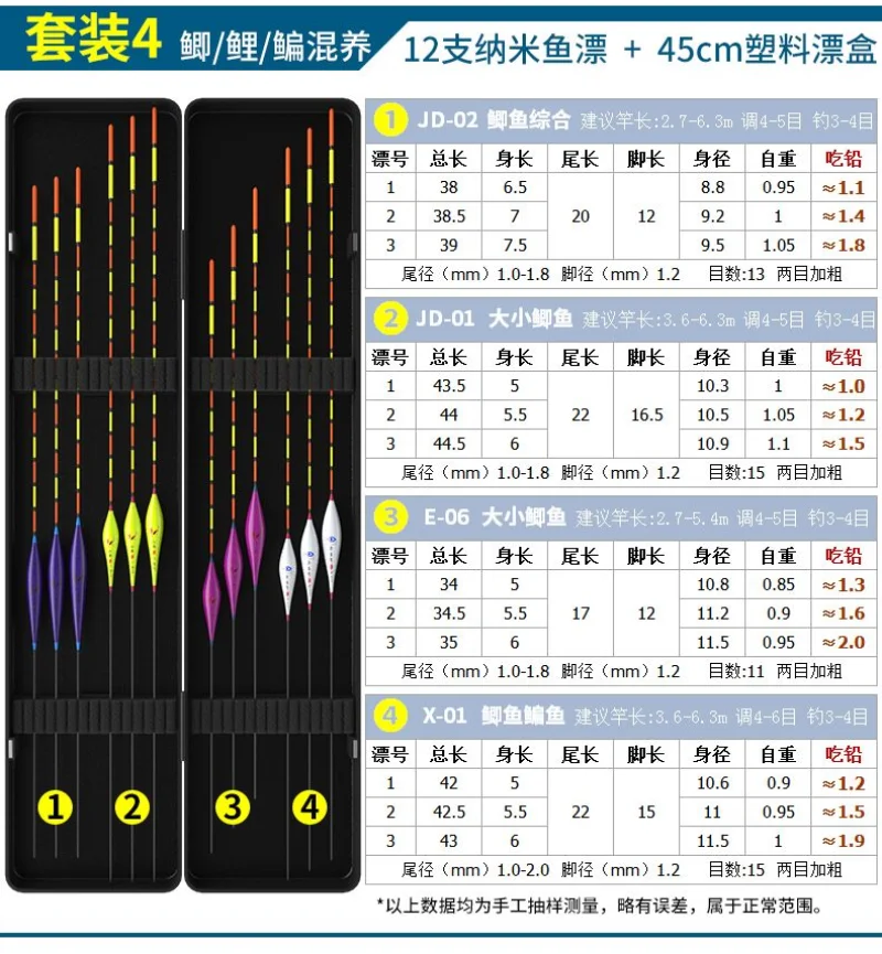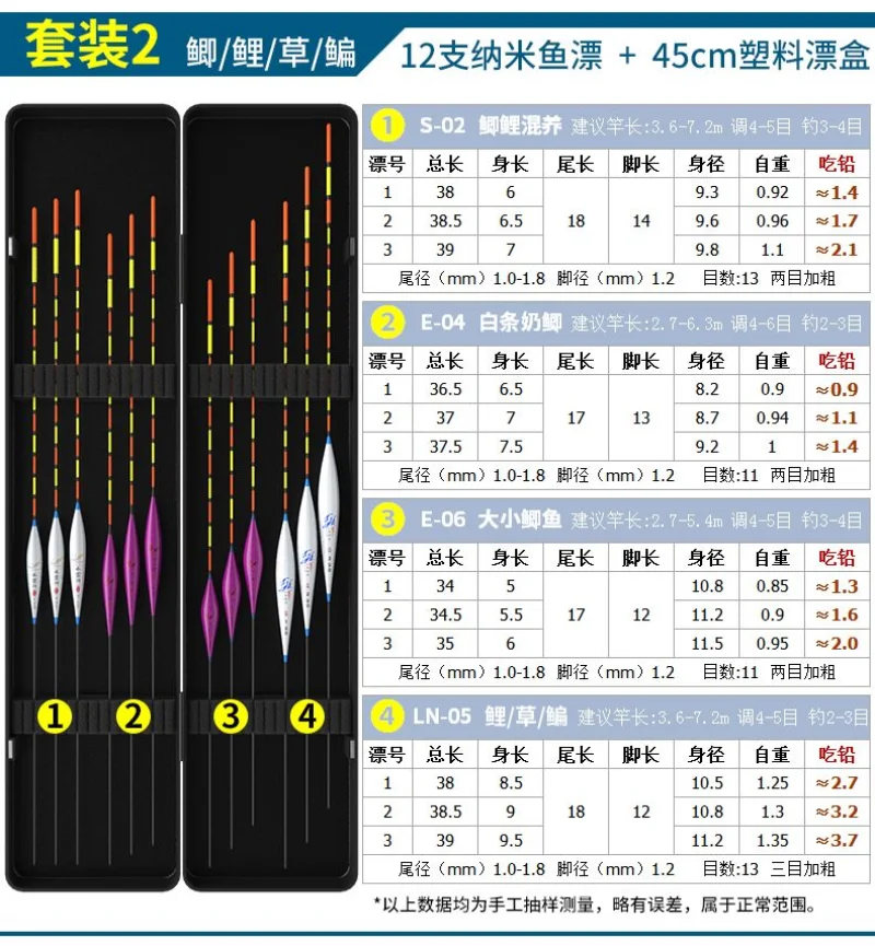 1. El paquete solo incluye 1 Juego de flotador de pesca, excluyendo otros artículos.