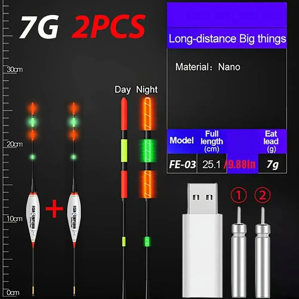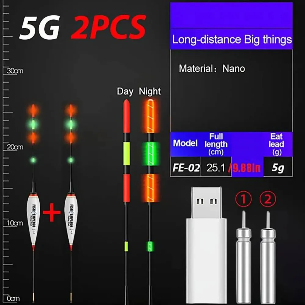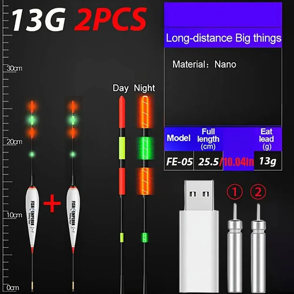Juego de flotadores de pesca, flotador luminoso Led de 3g/5g/7g/10g/13g + batería de cargador CR425, aparejos de pesca nocturnos 2024, 2 uds.