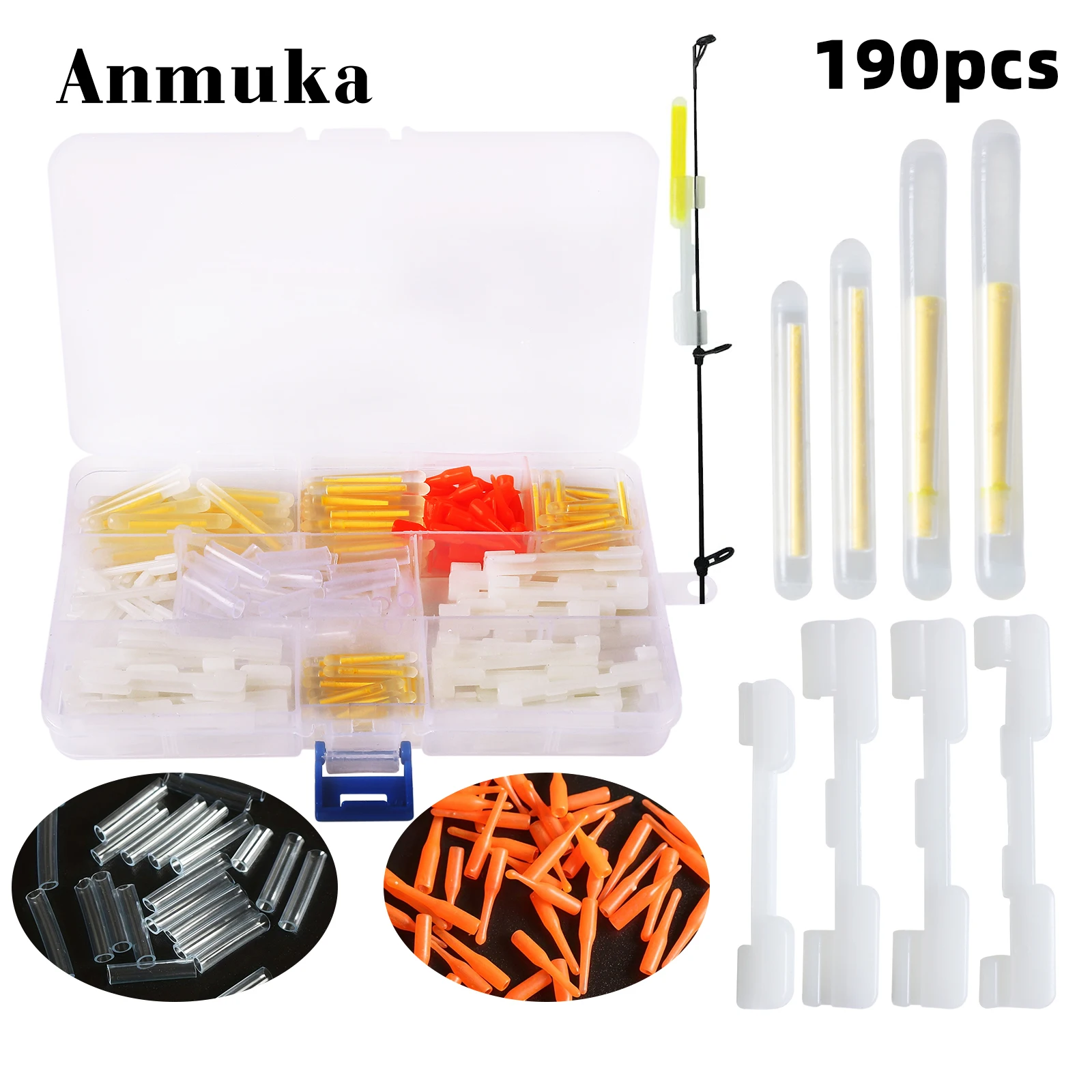 Juego de flotadores de pesca fluorescentes, palo de brillo nocturno especial, incluye cuna de flotador, accesorios de pesca, caja de 190 piezas