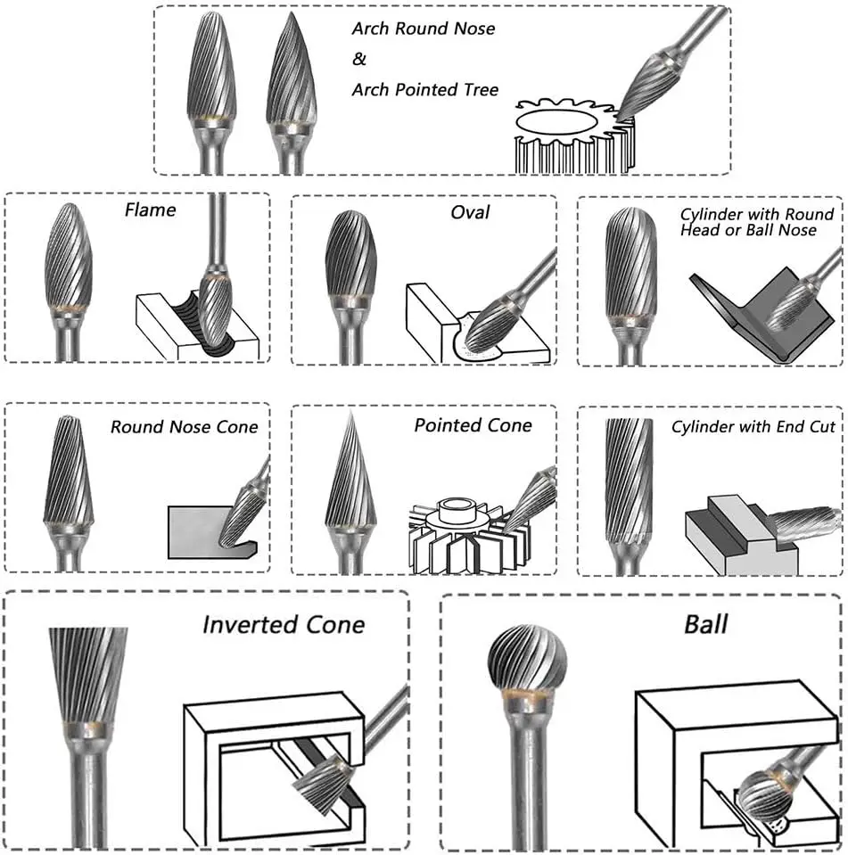 La Lima rotatoria de carburo, también conocida como fresa mixta de carburo de alta velocidad, fresa troqueladora de carburo, etc., se utiliza con molino eléctrico o herramientas neumáticas. La Lima rotativa de carburo se utiliza ampliamente en maquinaria, automóviles, barcos, industria química, tallado artesanal y otros sectores industriales. Se puede utilizar para procesar hierro fundido, acero fundido, acero al carbono, acero aleado, acero inoxidable, acero endurecido, cobre y aluminio, Etc. Dado que la lima de carburo rotativa se sujeta en una herramienta giratoria de alta velocidad para el control manual, la presión y la velocidad de alimentación de la lima de carburo rotativa determina la vida útil y el efecto de corte de la herramienta