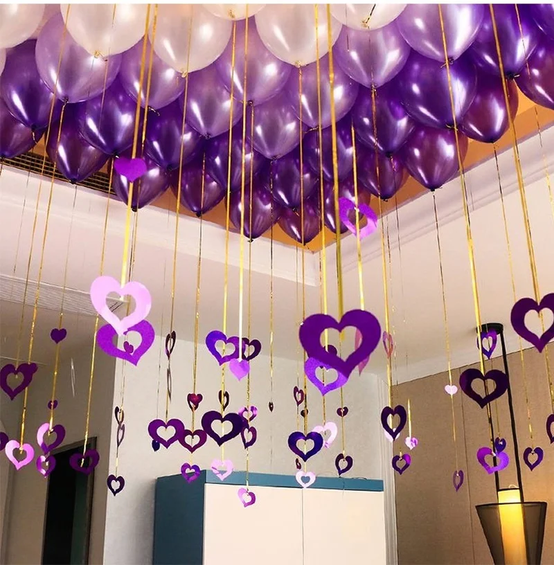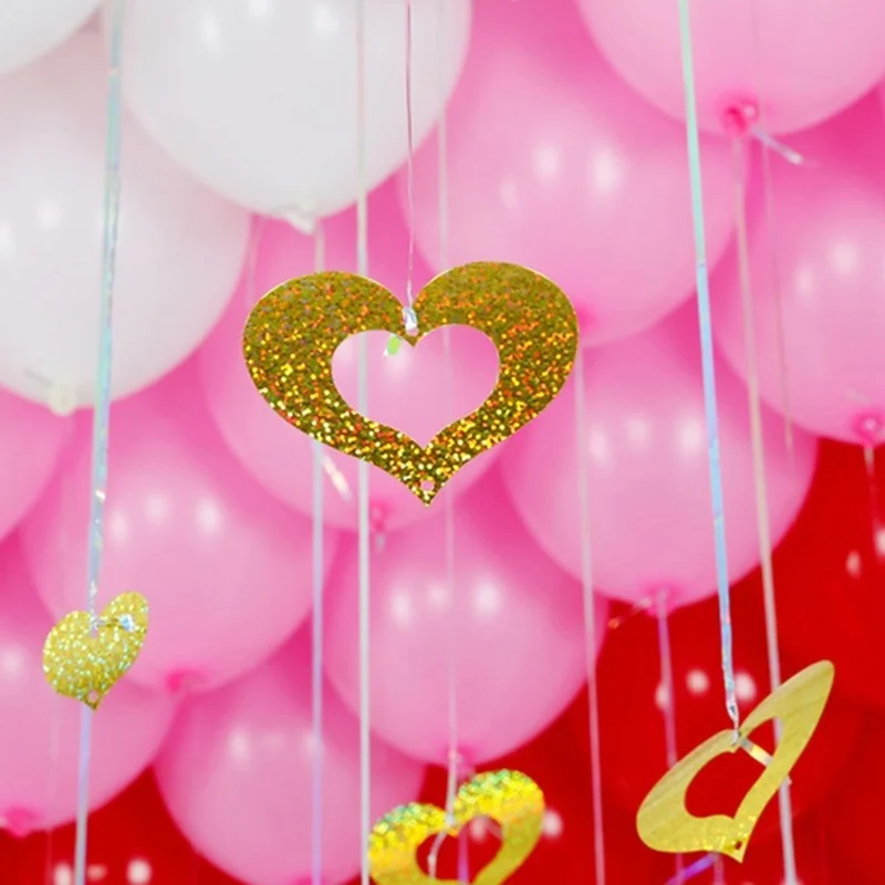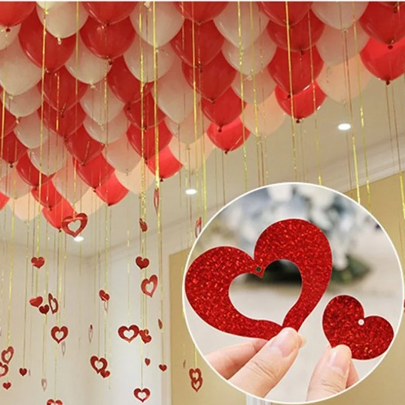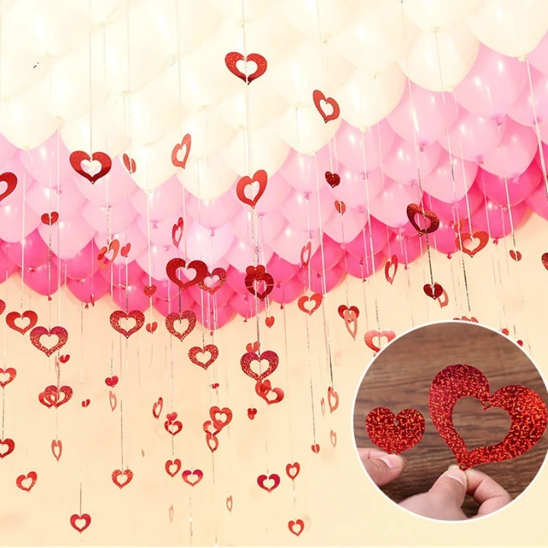 Juego de globos y colgantes de hilo, lentejuelas huecas en forma de corazón, decoración de boda, guirnalda de papel para fiesta de cumpleaños, 100 unidades