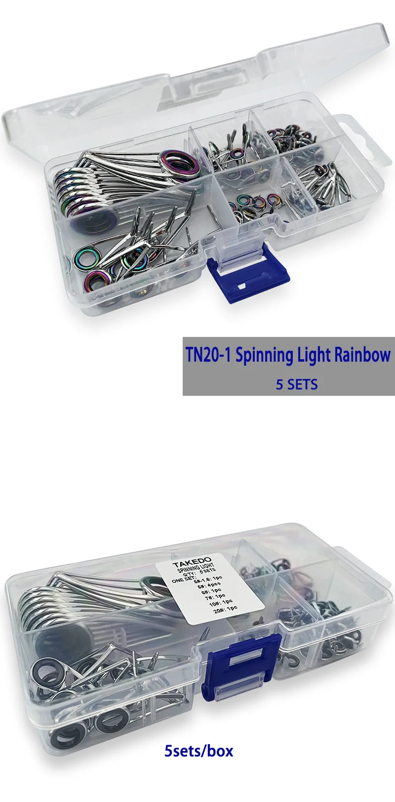 Juego de guías de caña de pescar giratorias, Kit de reparación de varilla, anillos de cerámica de acero inoxidable, accesorios de repuesto giratorios, 5 Juegos, TN20-1