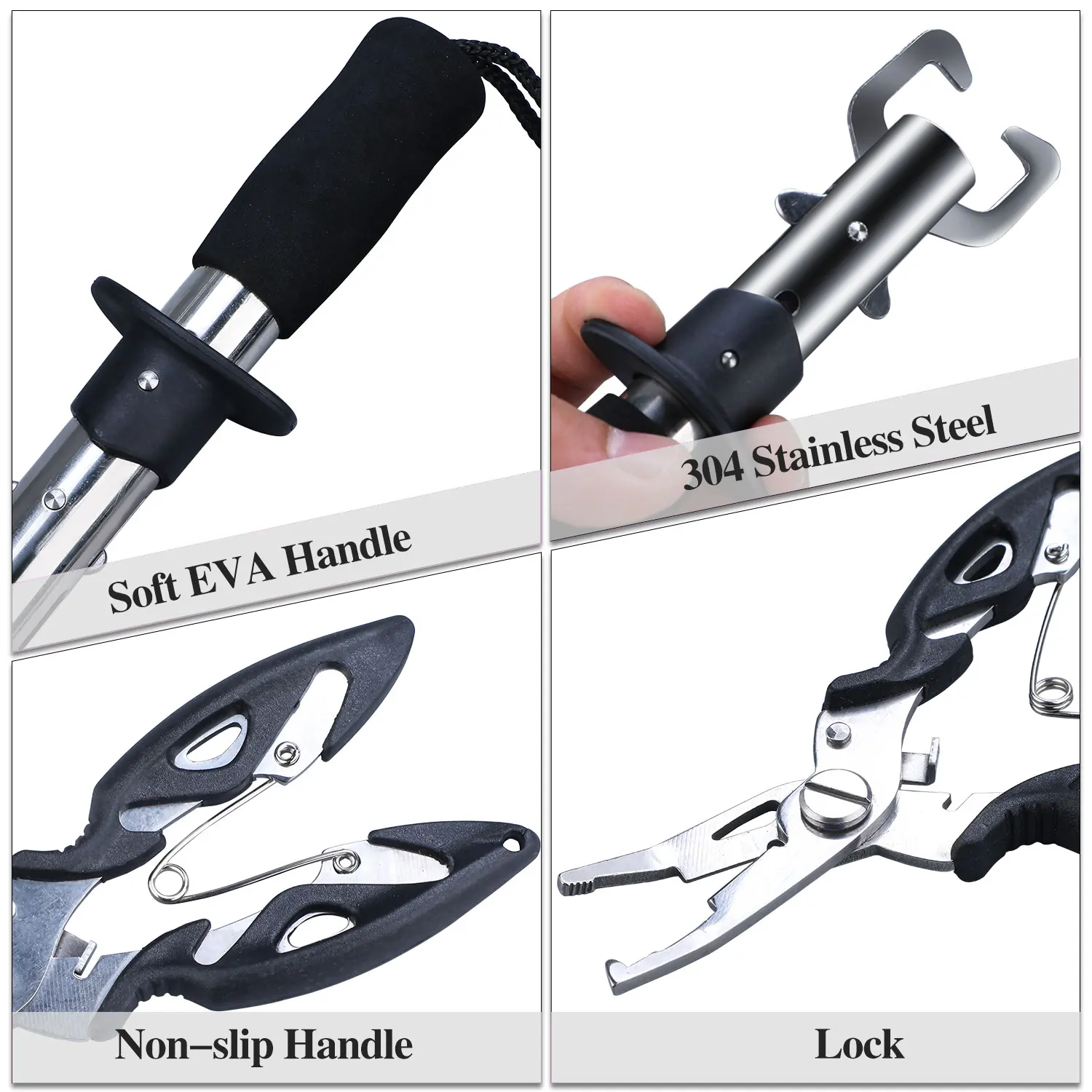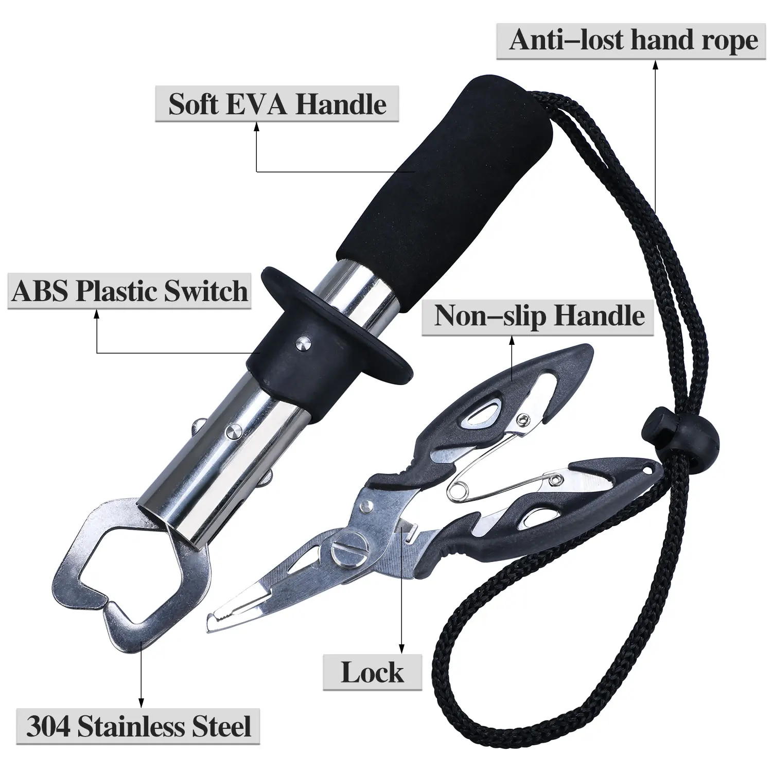 Alicates de pesca, juego de herramientas de agarre de pescado, alicates de aluminio resistentes al agua salada, mango de EVA, removedor de gancho de anillo dividido