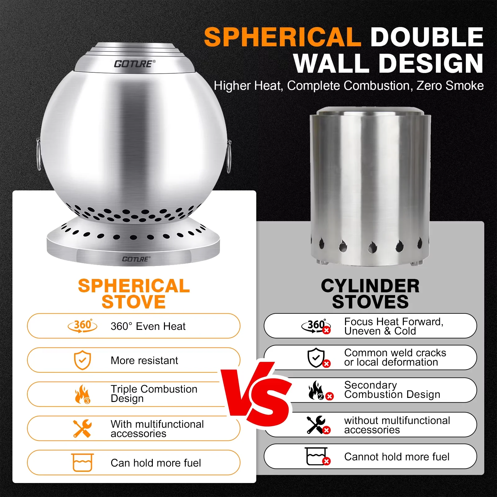 La estructura esférica de doble pared y el diseño de triple combustión aumentan la eficiencia de la combustión en un 150%, logrando una combustión sin humo del 99%.