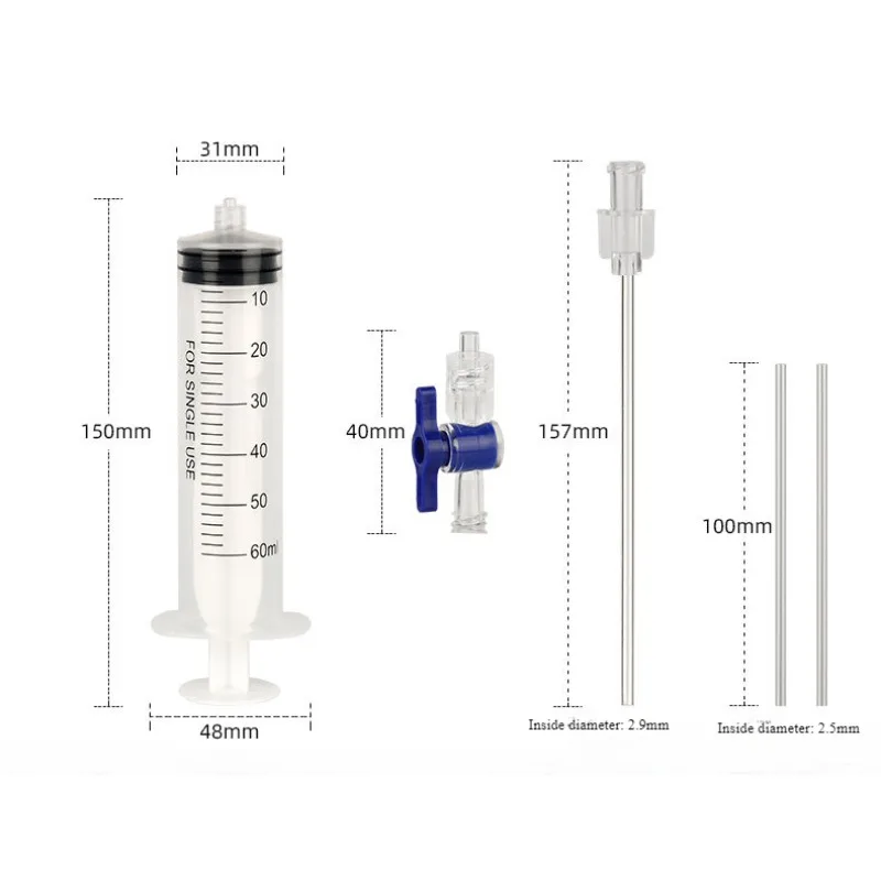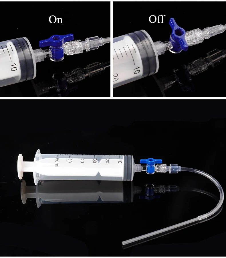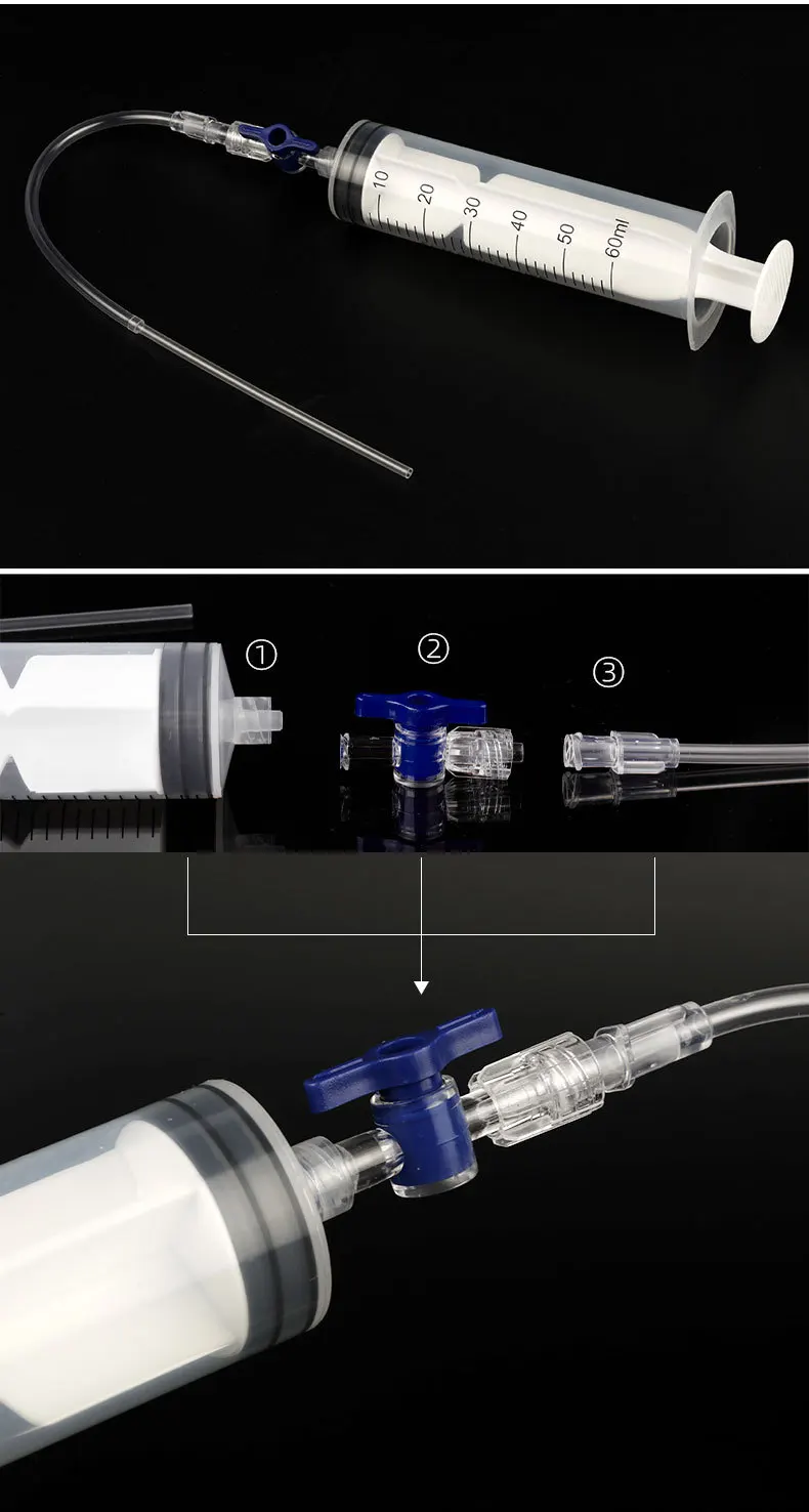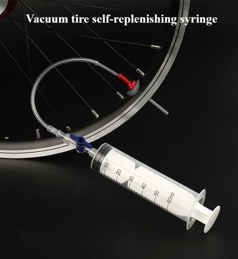 Juego de jeringa de 60ML, fluido de reparación cansado de llenado automático, combinación de plástico, neumático de vacío de bicicleta, llave central de válvula reparada de neumáticos franceses, 1 Juego