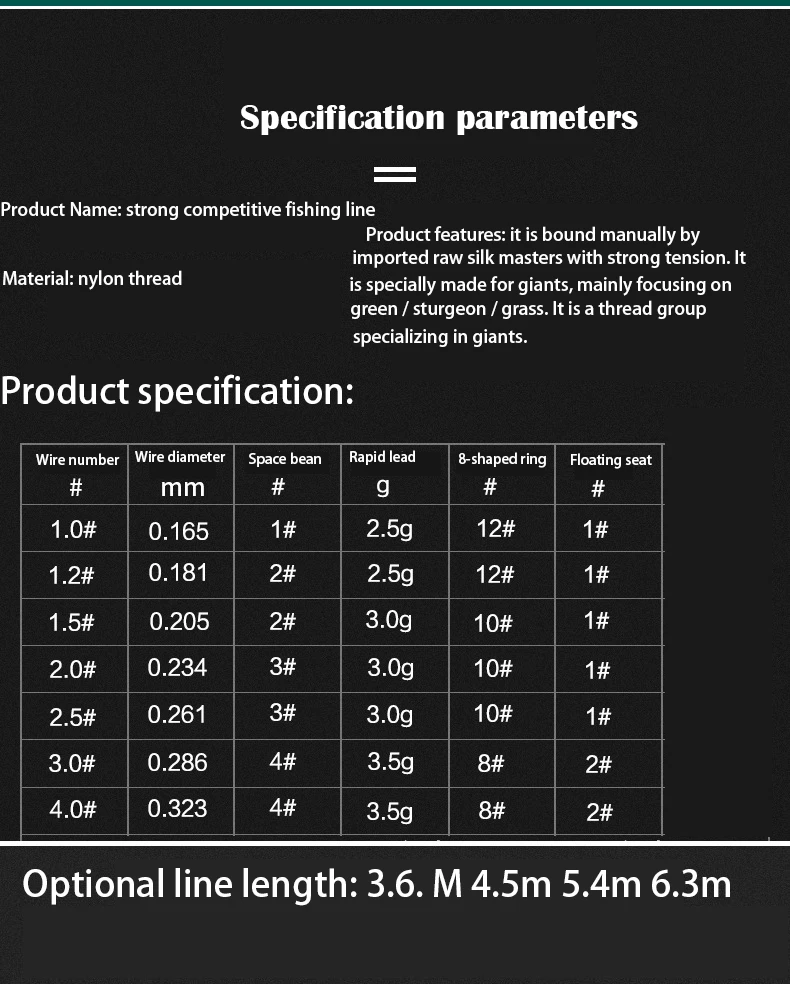 Nota: El número de línea no es el diámetro, comprueba la tabla cuidadosamente y déjanos un mensaje si hay algo confuso, ¡Gracias!