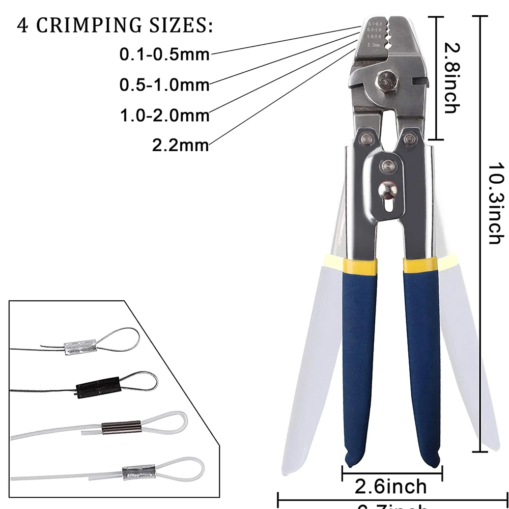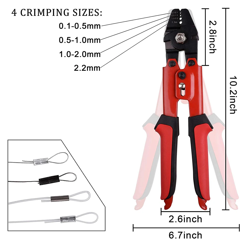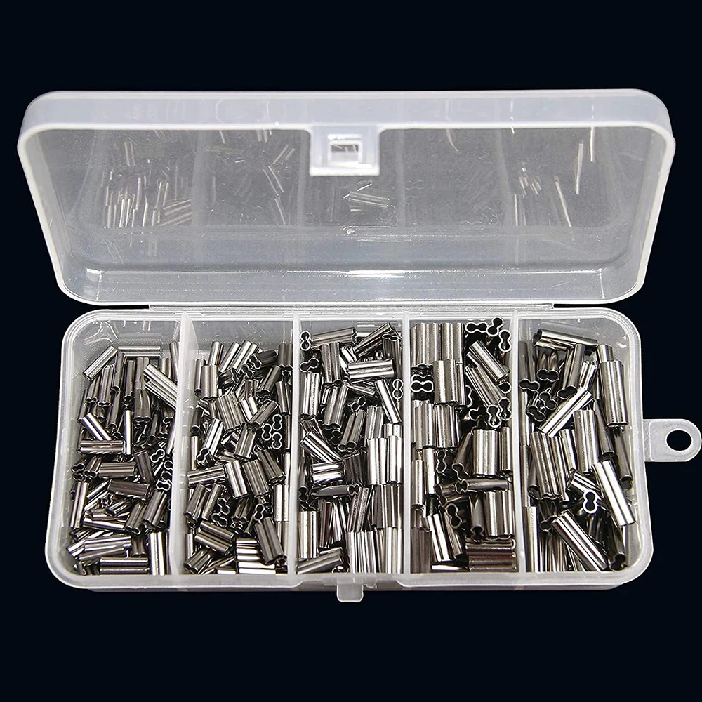 Juego de manguitos de pesca de crimpado de 300 Uds. Con alicates de crimpado, Conector de manguitos de tubo de crimpado de cable de pesca de alta resistencia