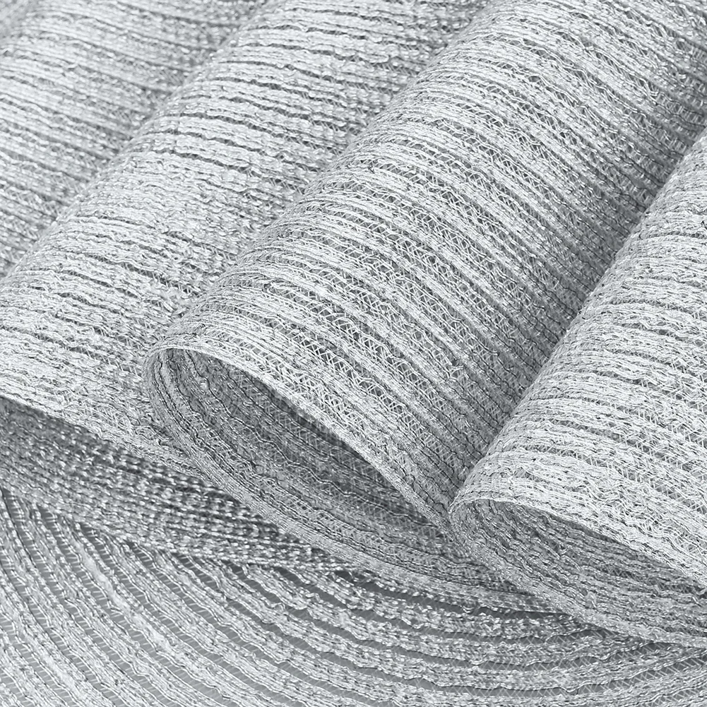 Hecho de hilos finos transparentes de poliéster y hilos de mezcla de algodón.