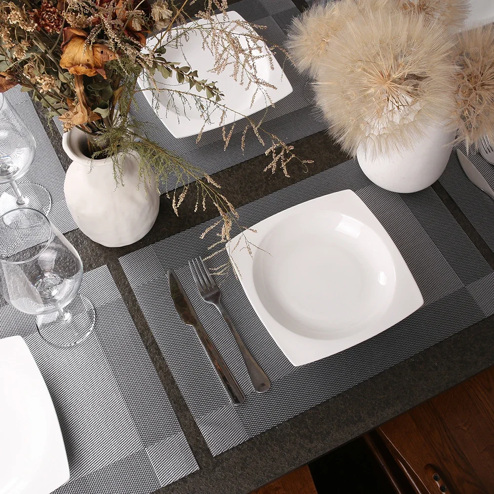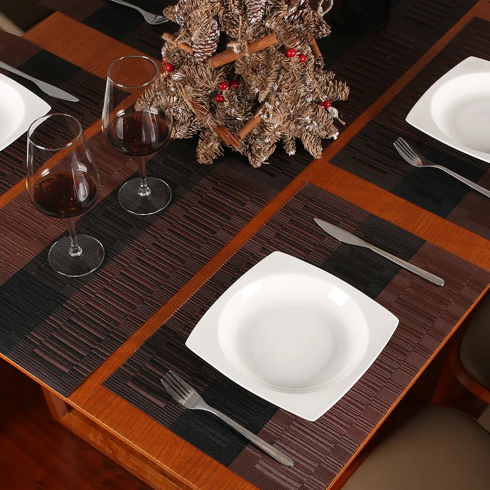 MATERIAL DE ALTA CALIDAD: El mantel individual está hecho de 70% PVC + 30% poliéster y es saludable y respetuoso con el medio ambiente.Estos manteles son puros y elegantes, se utilizan perfectamente como decoración de mesa, haciendo que su comedor sea cómodo.