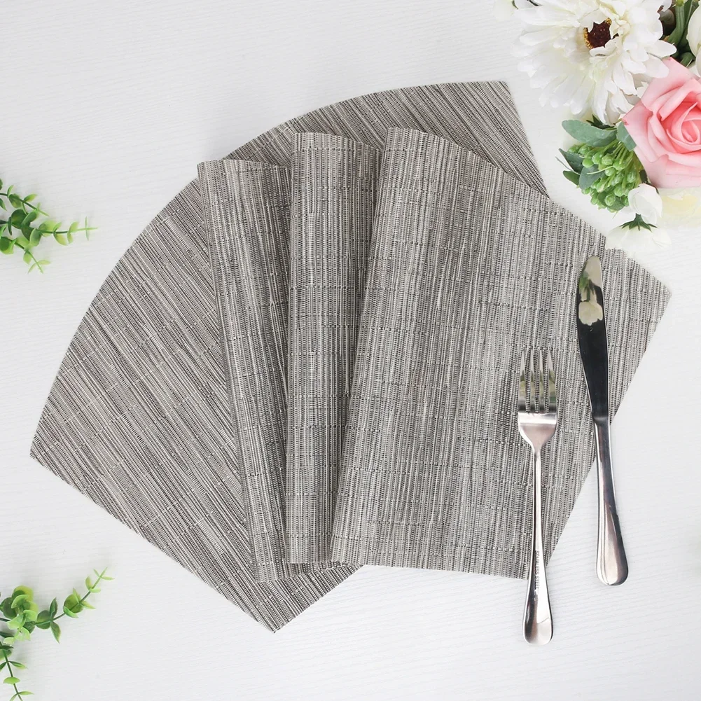 RESISTENTE AL DESLIZAMIENTO: Son unidades duraderas fabricadas con vinilo tejido de PVC de calidad y el patrón de tejido crea un contacto antideslizante con la mesa.El respaldo más áspero les brinda un buen agarre antideslizante que garantiza la seguridad necesaria ya que no se deslizarán.