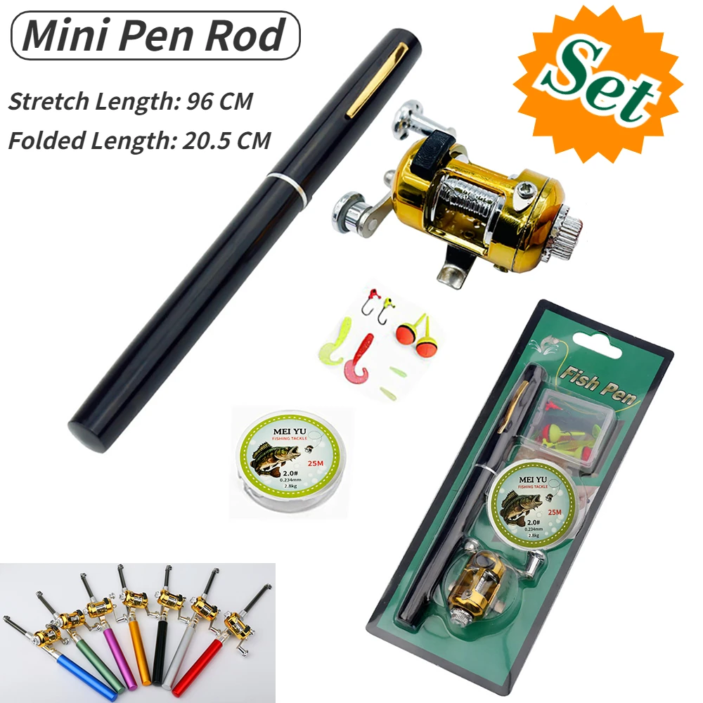 Juego de Mini caña de Pescar portátil, longitud de 96CM, ligera, 7 colores, tamaño de bolsillo, duradera para todas las aguas