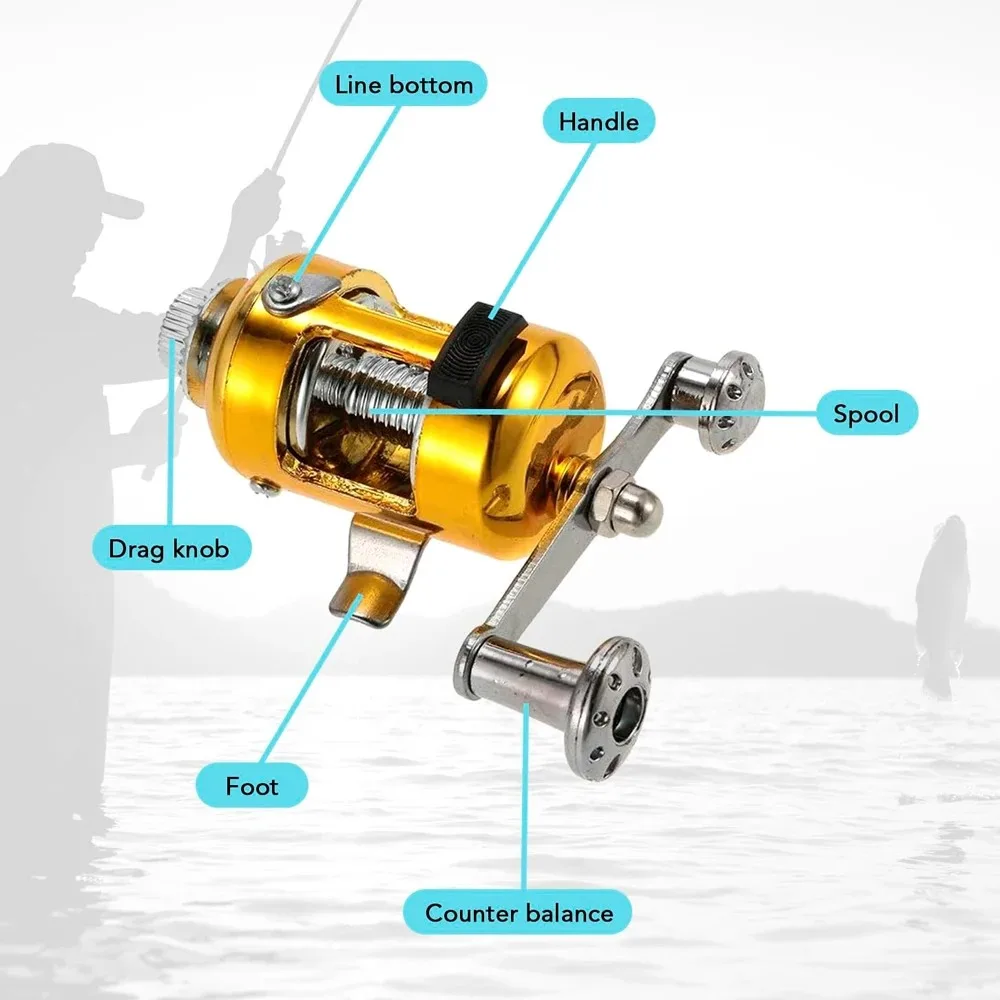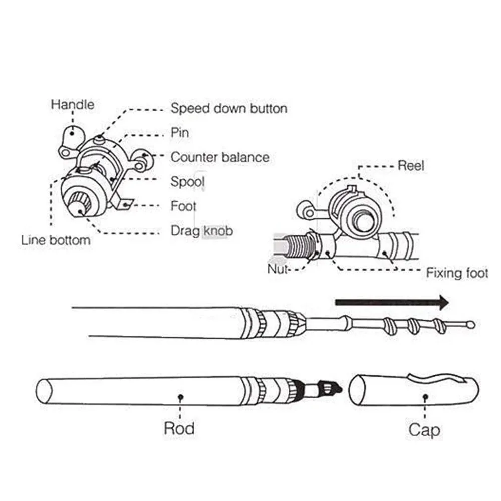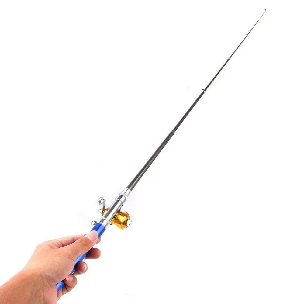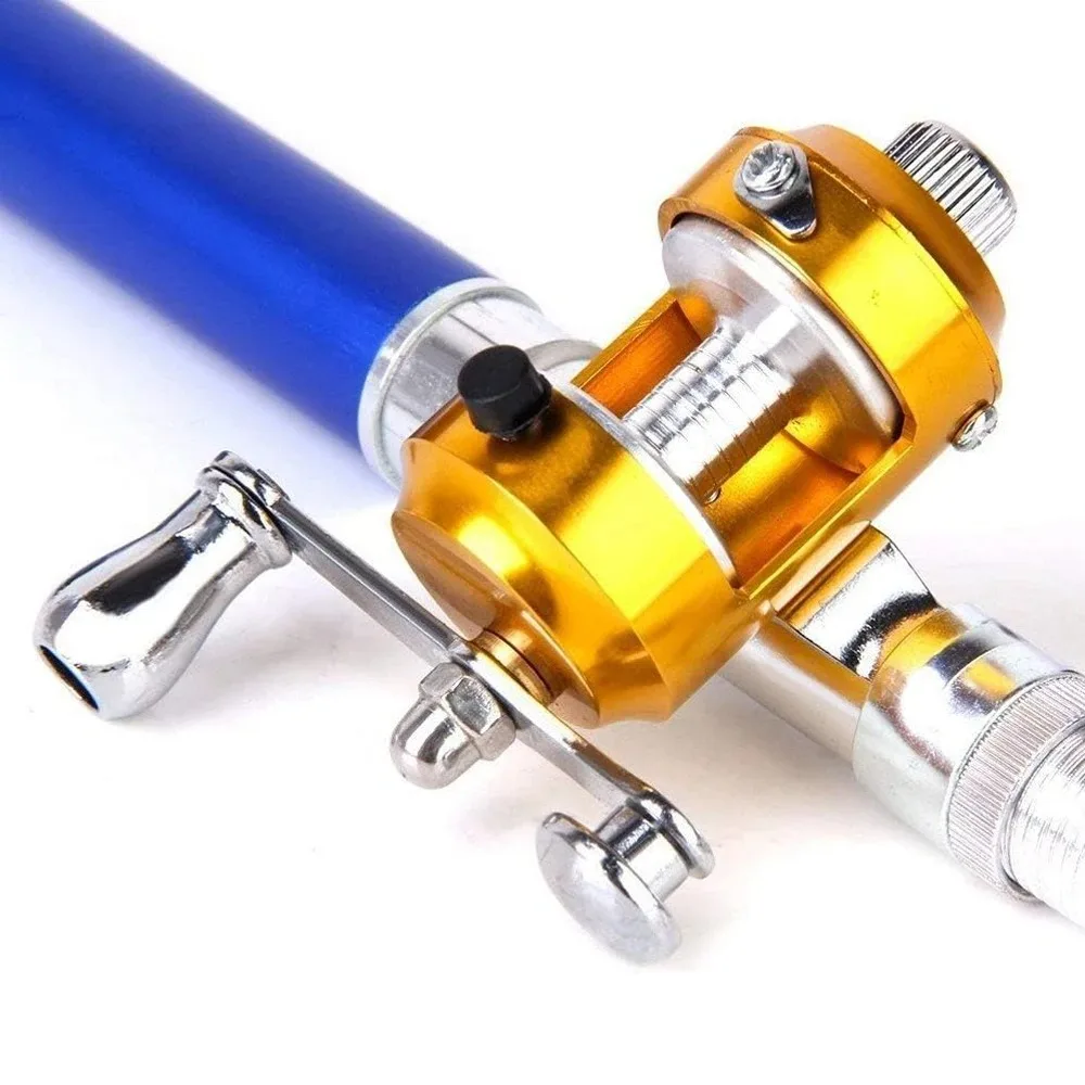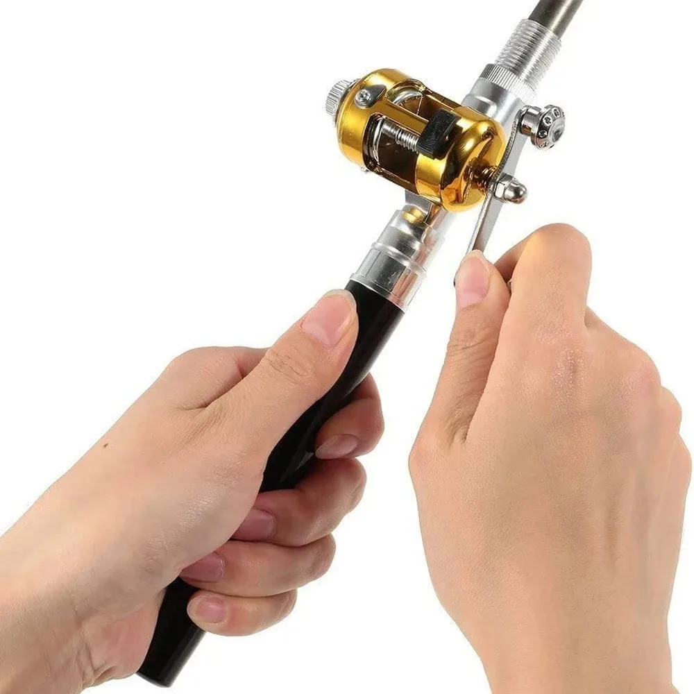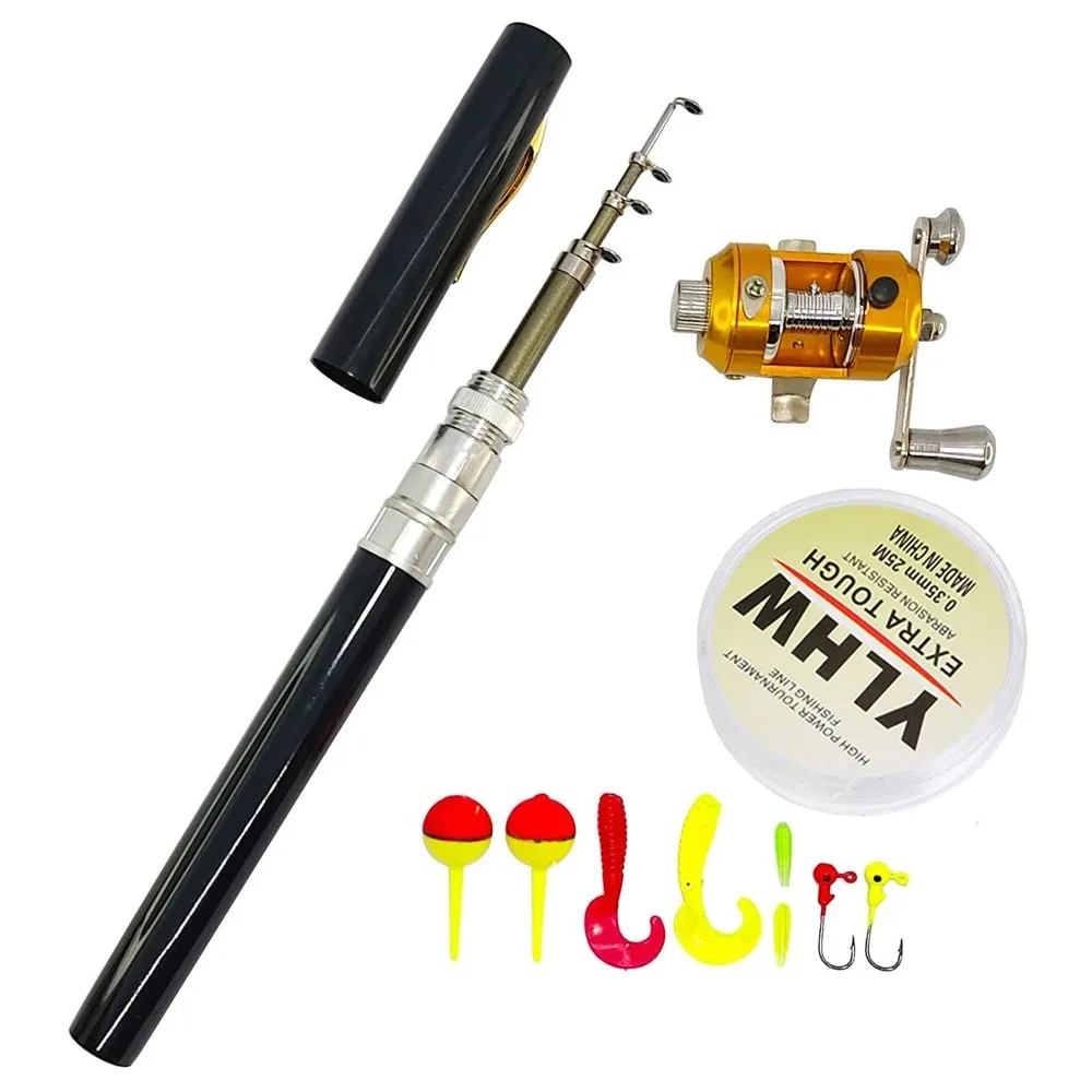 Juego de Mini caña de pescar telescópica de bolsillo portátil, carrete y carrete, pequeño poste de pesca en hielo con línea de carrete, gancho de cebo para peces, 1m