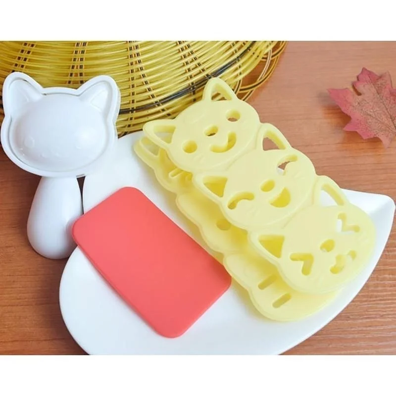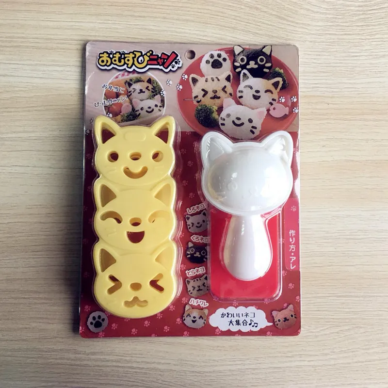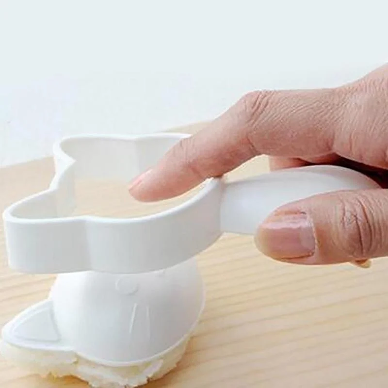 Juego de moldes para bolas de arroz con forma de gato y conejo, fiambrera de dibujos animados para niños, herramienta creativa para Sushi de arroz japonés, moldes para pasteles, moldes de silicona