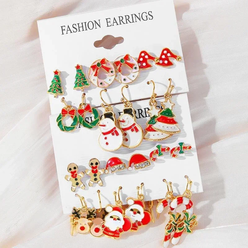 Juego de pendientes de Navidad de dibujos animados para mujer, copo de nieve, árbol, muñeco de nieve, campana, pendiente, bola de Navidad, regalos de joyería, moda