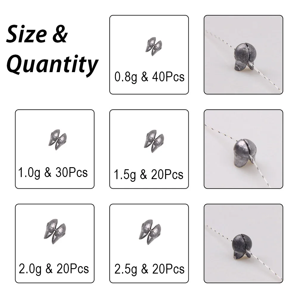 Juego de plomos de tiro dividido de 130 Uds., pesas de pesca extraíbles, líder de pesca de fundición, plomos de plomo redondos, aparejos de pesca
