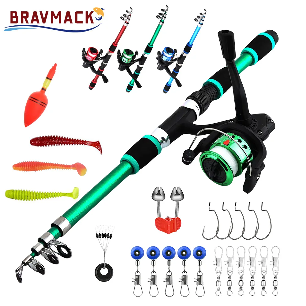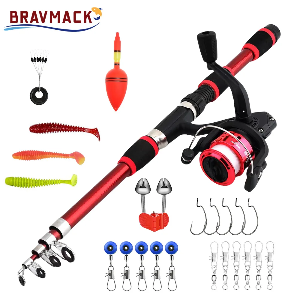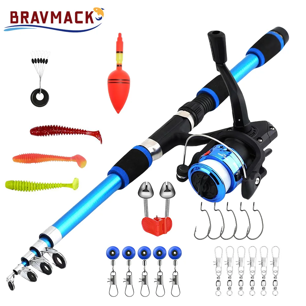 Juego de pesca de 1,8 m, caña de pescar y rueda de pesca, juego de cebo flotante para peces, caña telescópica, rueda de pesca giratoria, agua salada, agua dulce