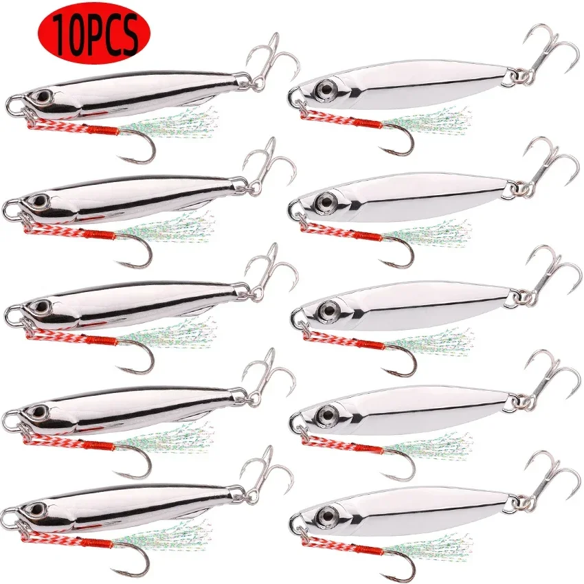 Juego de pesca de mar de Color plateado, aleación de Zinc, 60g, 40g, 30g, 20g, 15g, 10g, 7g, señuelo de Jigging, señuelo de pesca de Metal, señuelos de agua salada, 10 Uds.