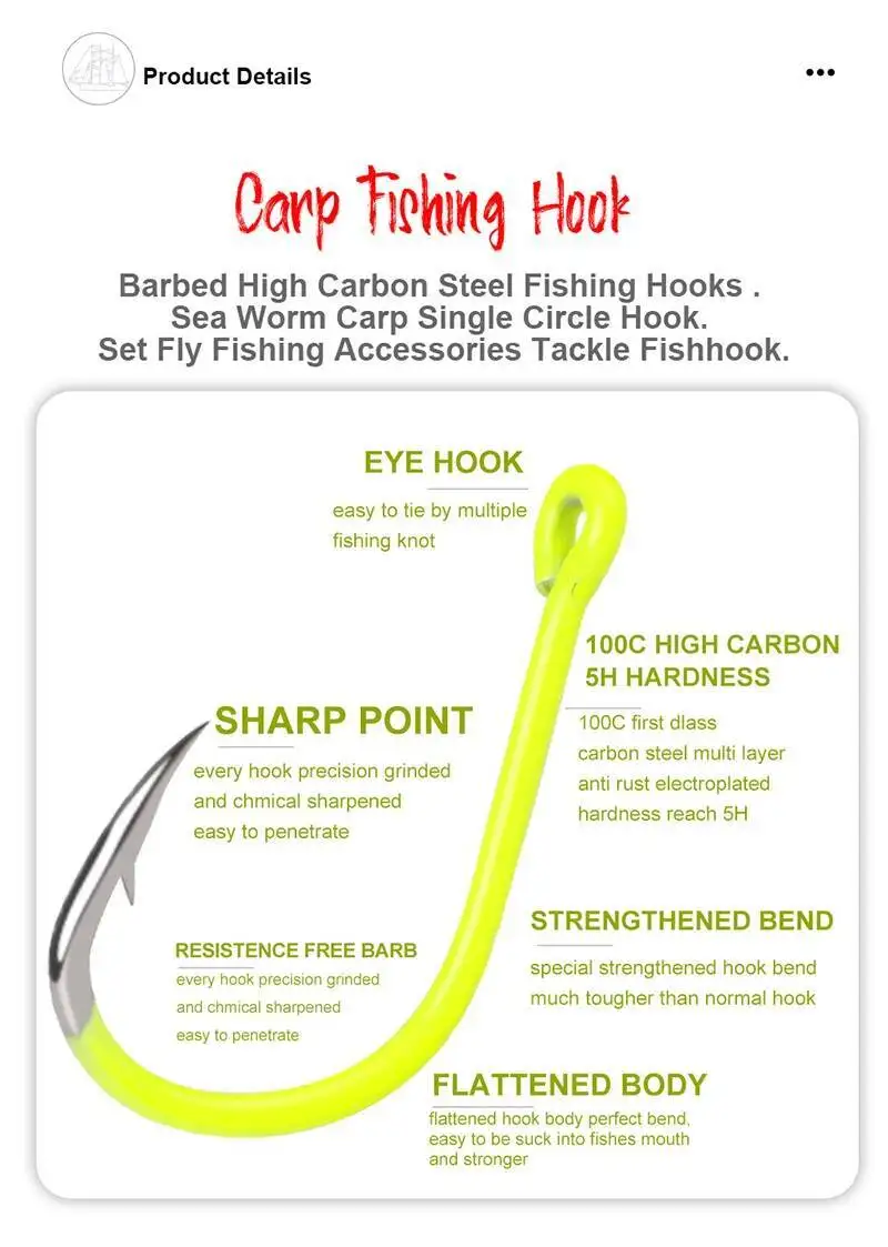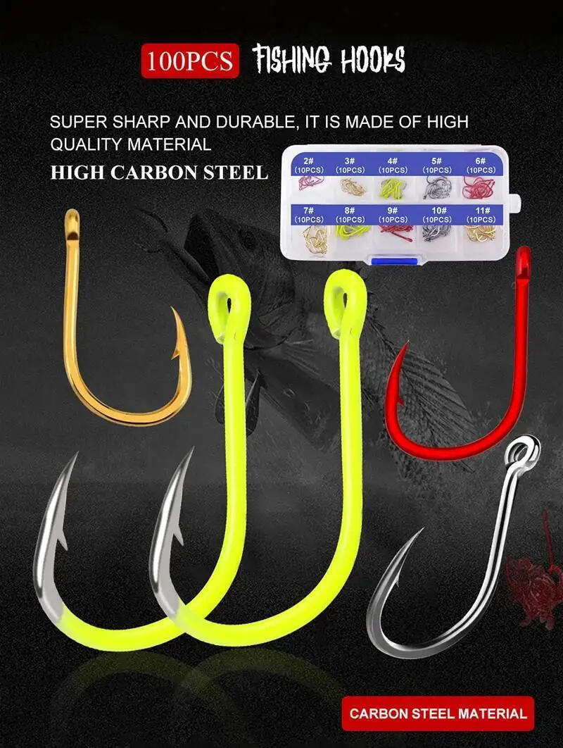 Juego de pesca pico torcido con anzuelo de pesca con púas anzuelo de pesca de acero rico en carbono accesorios para equipos de pesca de mar herramientas 100 Uds