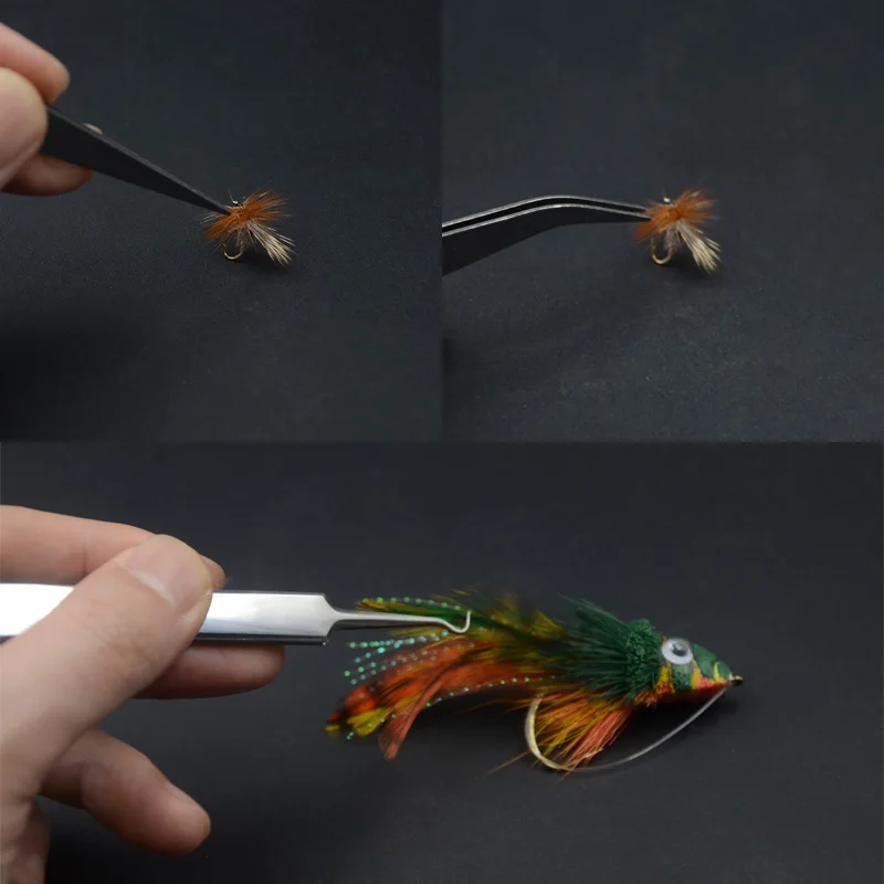 Características:Las pinzas para atar moscas incluyen tres estilos, recto, enganchado y curvo, diseños para satisfacer diferentes propósitos de uso. Acero inoxidable 304.