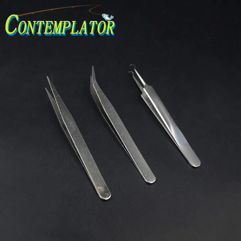 CONTEMPALTOR, 3 estilos/juego de pinzas para atar moscas para hacer moscas, pinzas antiestáticas rectas, enganchadas y curvas, herramientas útiles para atar moscas