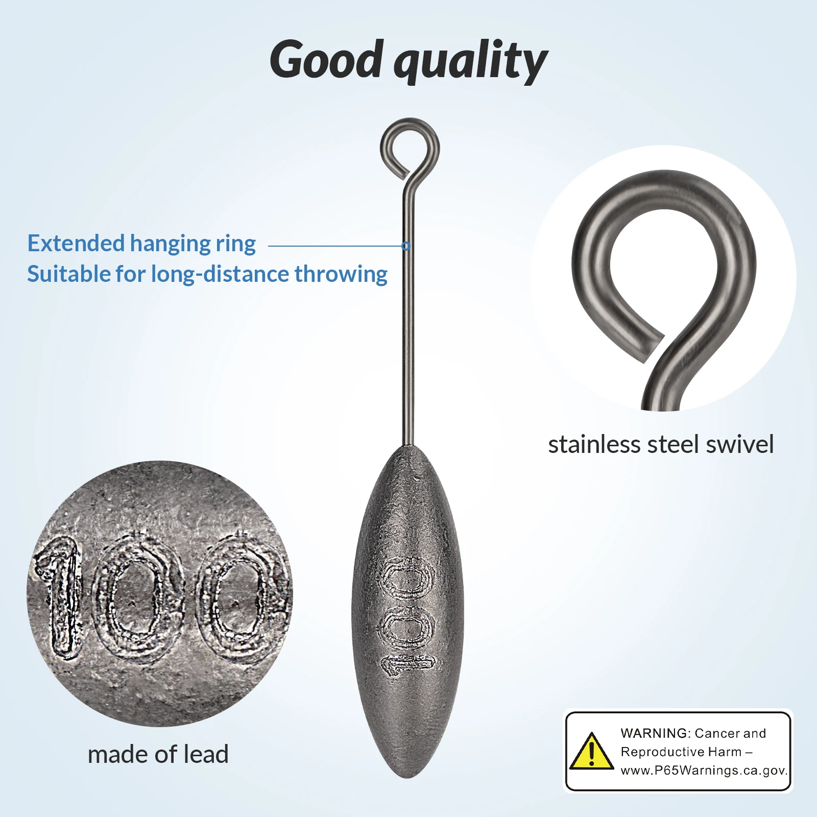 Diseño considerado: el diseño de cola larga no solo es ideal para lanzar a larga distancia, sino que también contribuye a la estabilidad del vuelo. El plomo de pesca de cola larga no es fácil de caer y es adecuado para lanzar a larga distancia