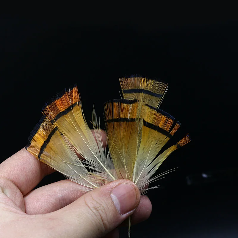 Juego de plumas de faisán doradas naturales, Cresta de cabeza de faisán dorado, cola central, material de plumas para atar moscas, nuevo