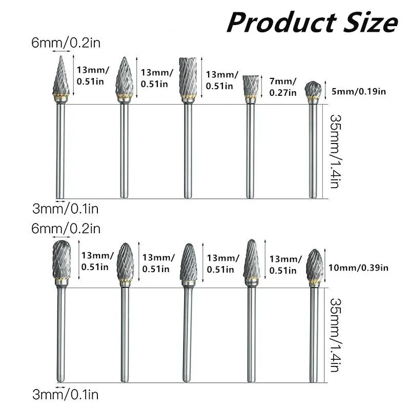 ✪✪【Operación de alta velocidad】 Las rebabas de carburo de tungsteno de acero de tungsteno adoptan tecnología de alta calidad y combinan materias primas de alta calidad para garantizar que el producto tenga pequeña amplitud y bajo nivel de ruido durante el funcionamiento a alta velocidad.