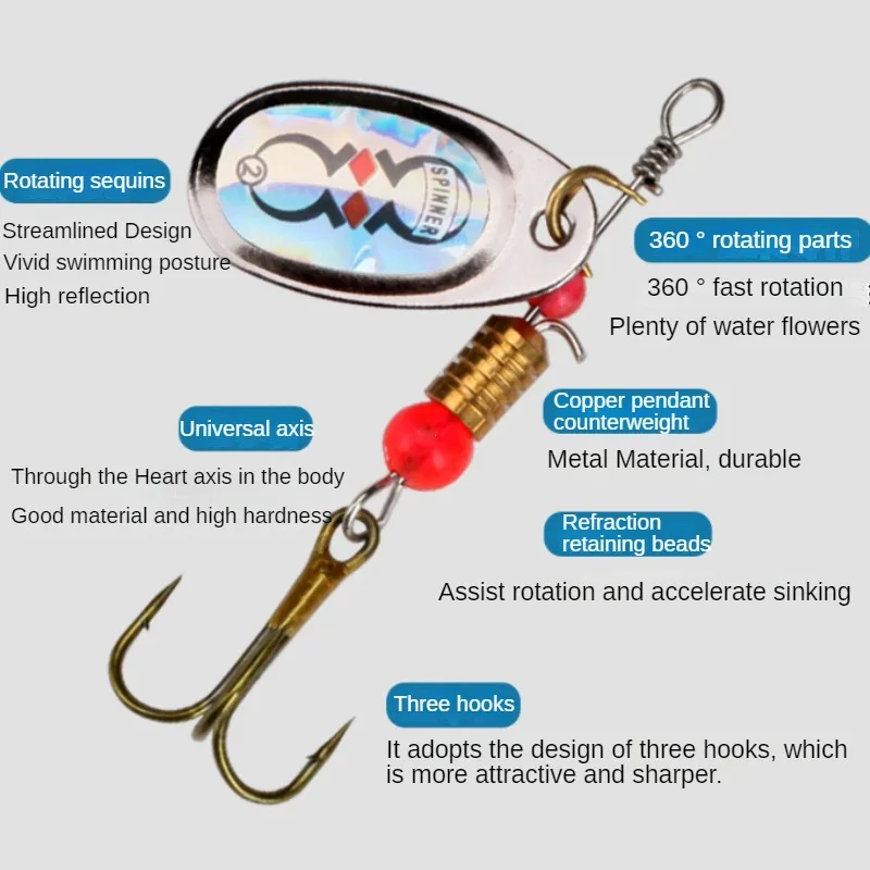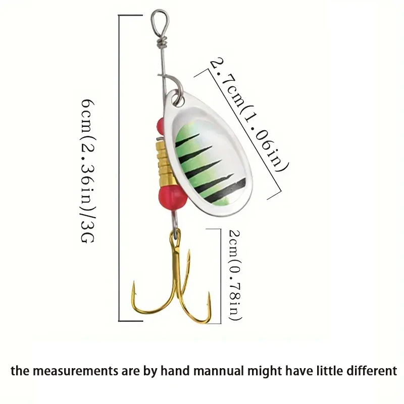• High-Quality Material :Crafted from durable metal, this spinner lure is designed to withstand the rigors of fishing, ensuring long-lasting use.