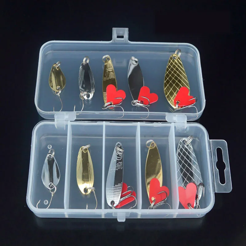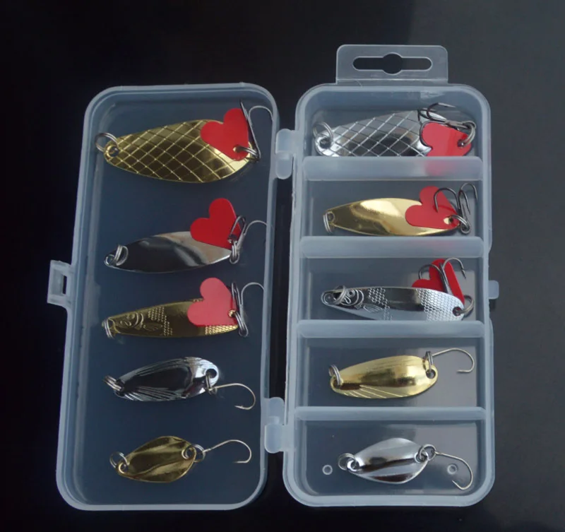 Juego de cebo de señuelo, juego de cuchara de señuelo giratorio de Metal de 10 piezas, accesorios de lentejuelas, cebo falso, cebo duro biónico, juego de aparejos de pesca