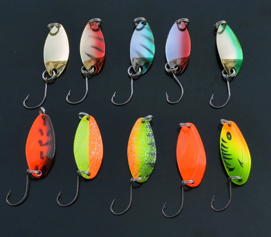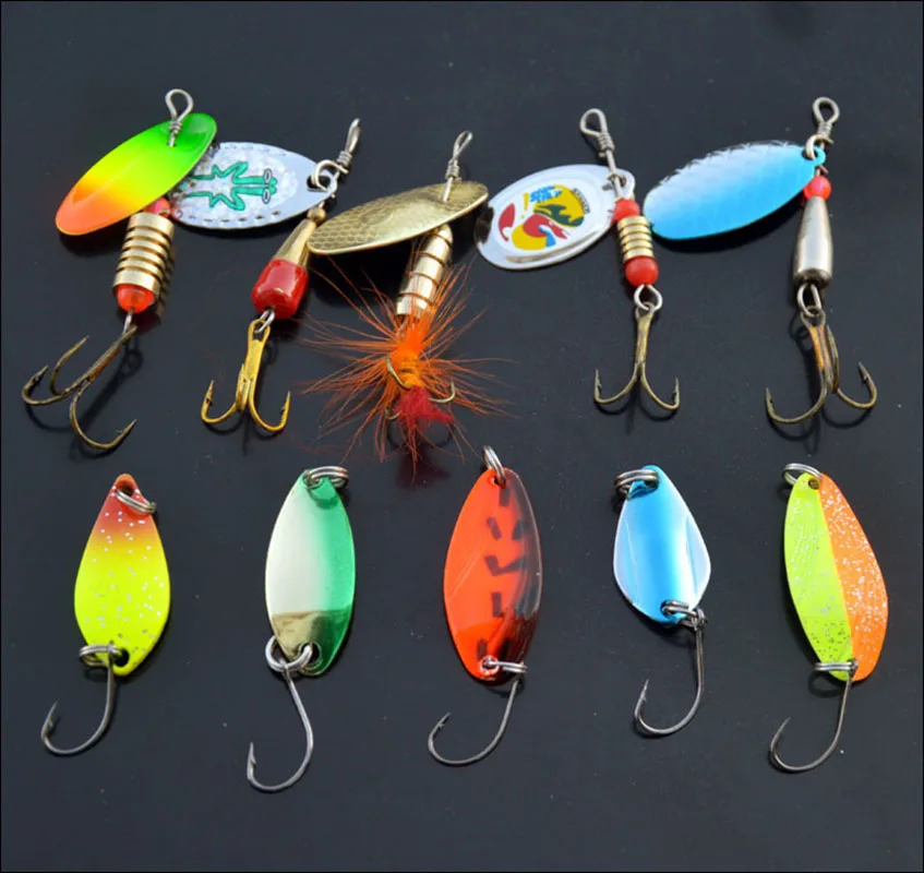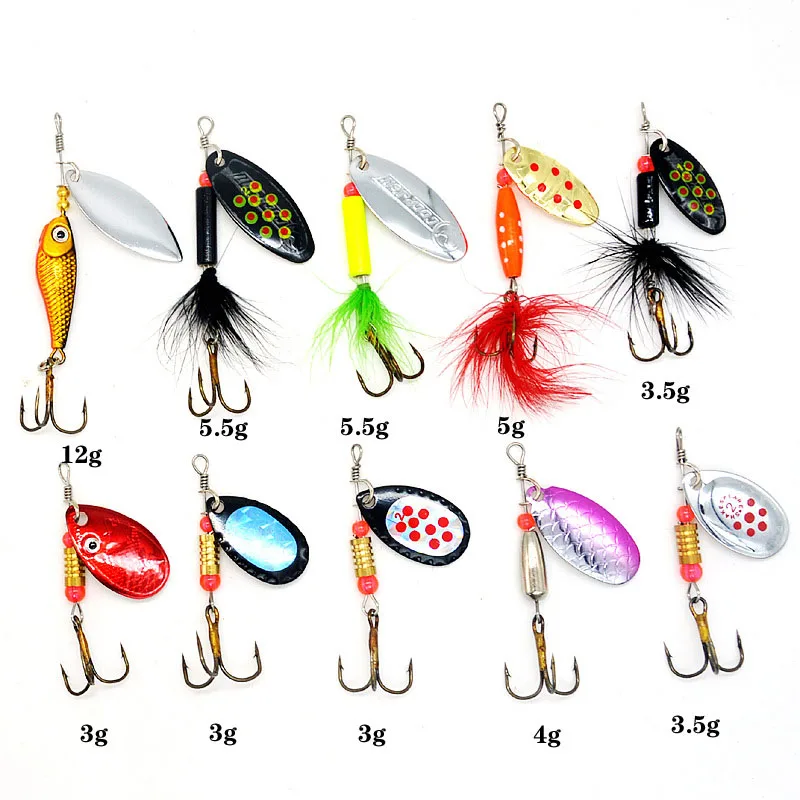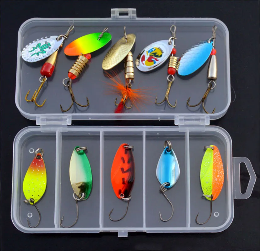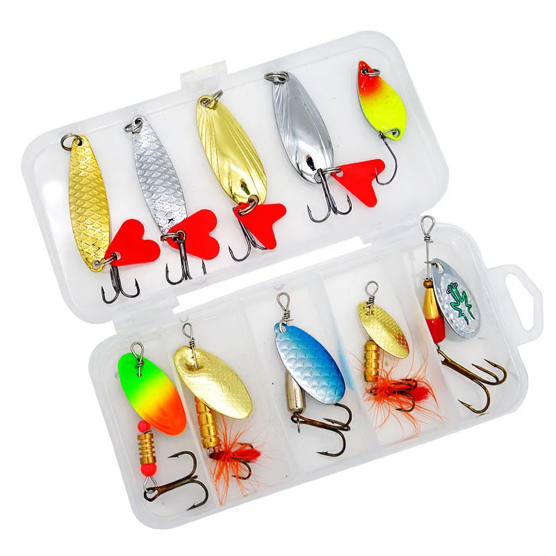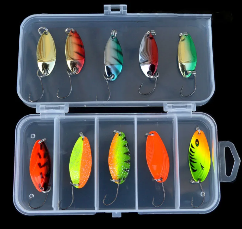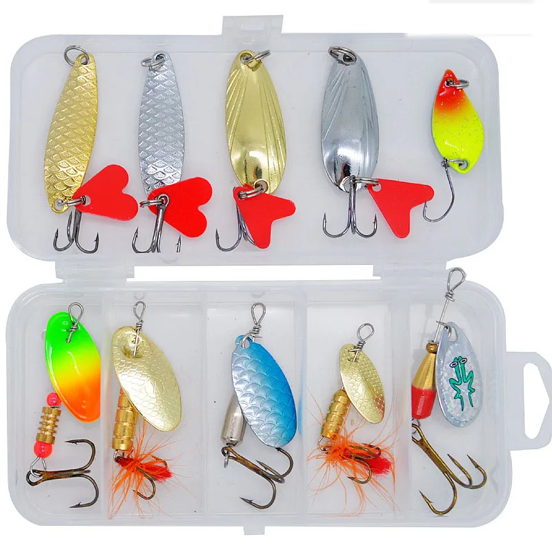 10 unids/set señuelo Metal Spinner señuelo cuchara conjunto lentejuelas con caja compuesto giratorio colorido cebo de lentejuelas