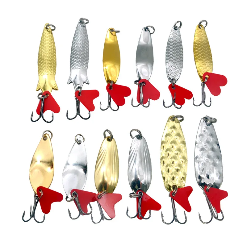 10 unids/set señuelo de Metal Spinner señuelo cuchara conjunto oro pesca Spinner señuelo lentejuelas con caja anzuelos triples aparejos de pesca cebo duro