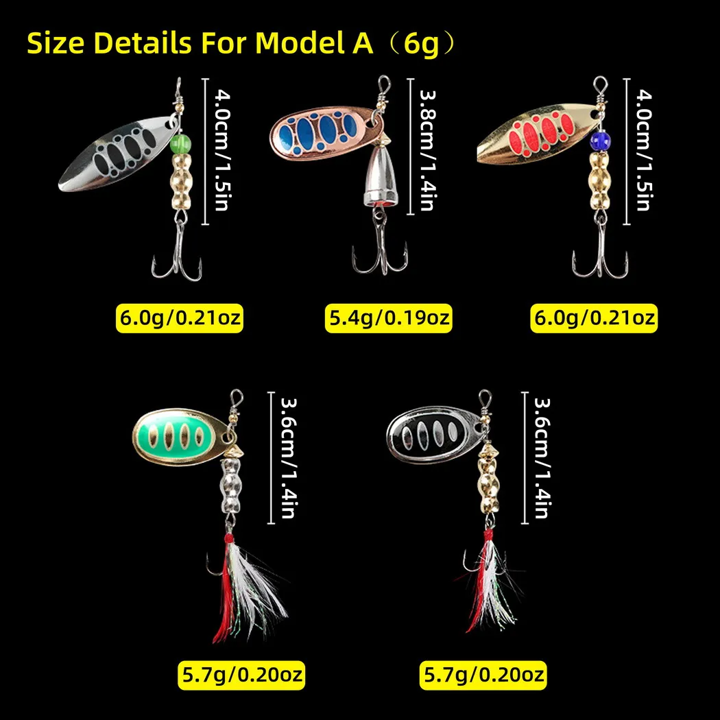 El kit de señuelos giratorios holográficos de alta calidad de 5 piezas viene con una variedad de colores y tamaños brillantes.Las acciones de natación realistas son irresistibles para los peces grandes.