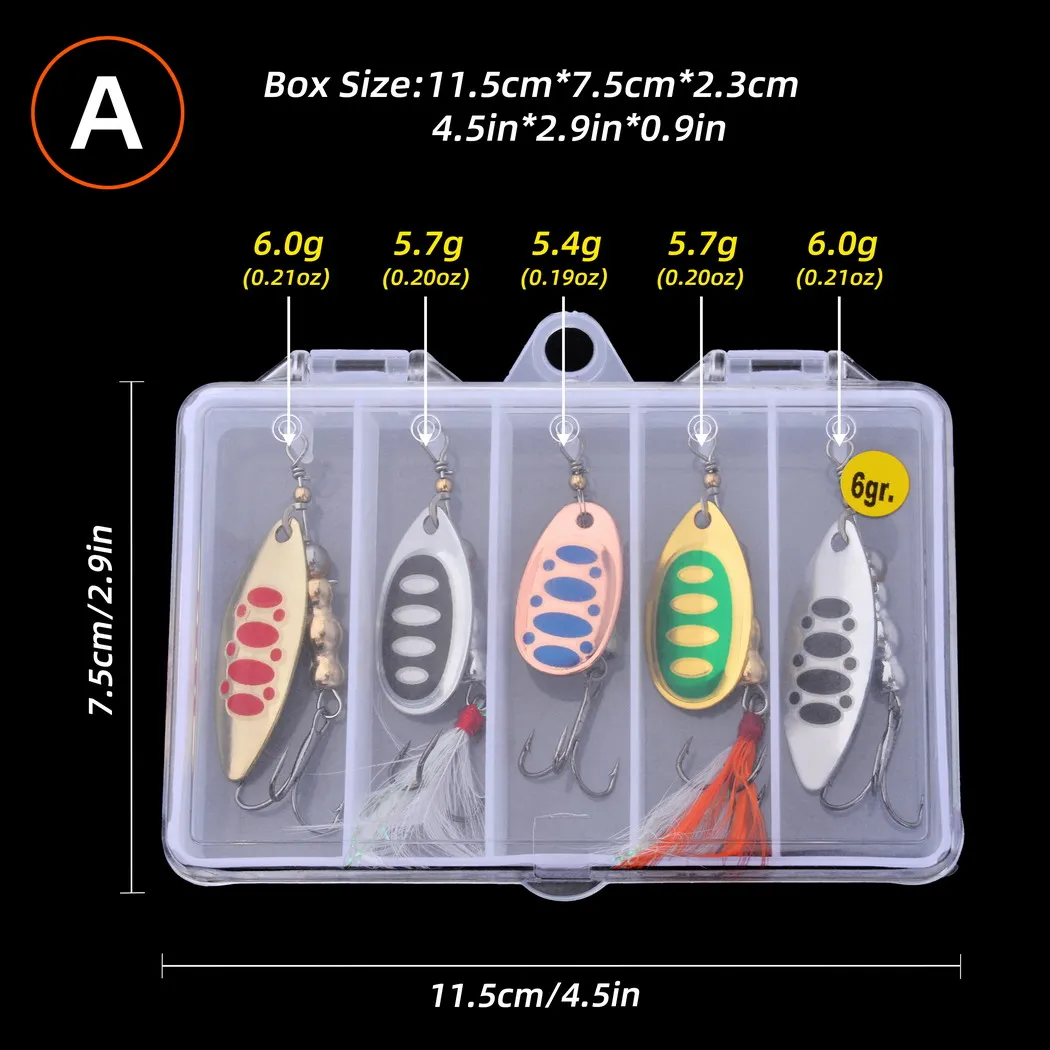Cuchara de Metal Spinner Señuelo de Pesca 5 uds Set Spoonbait Crankbaits Wobblers de Pesca para Lucio Crochet Kit Cebo Artificial