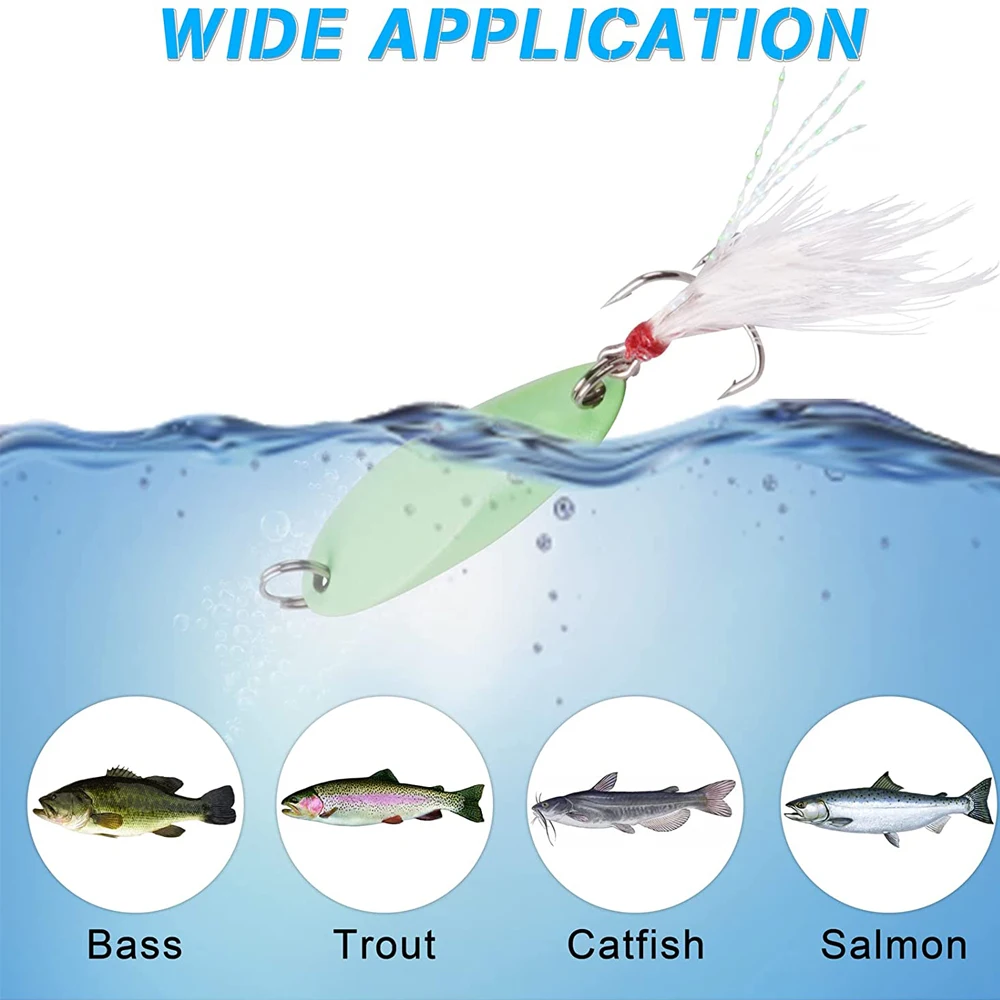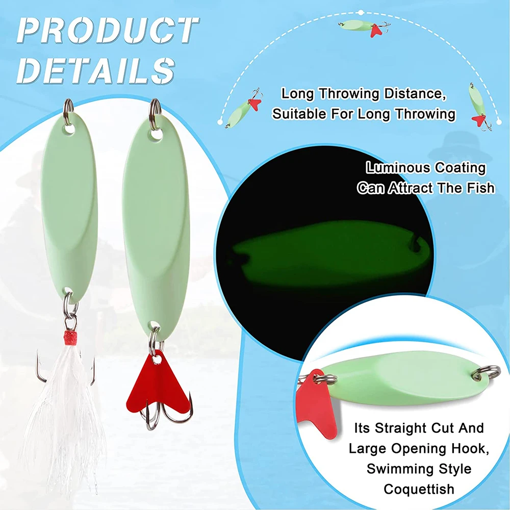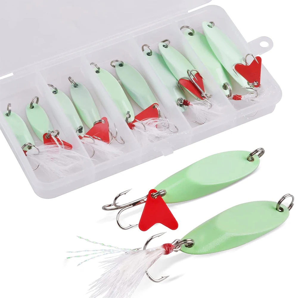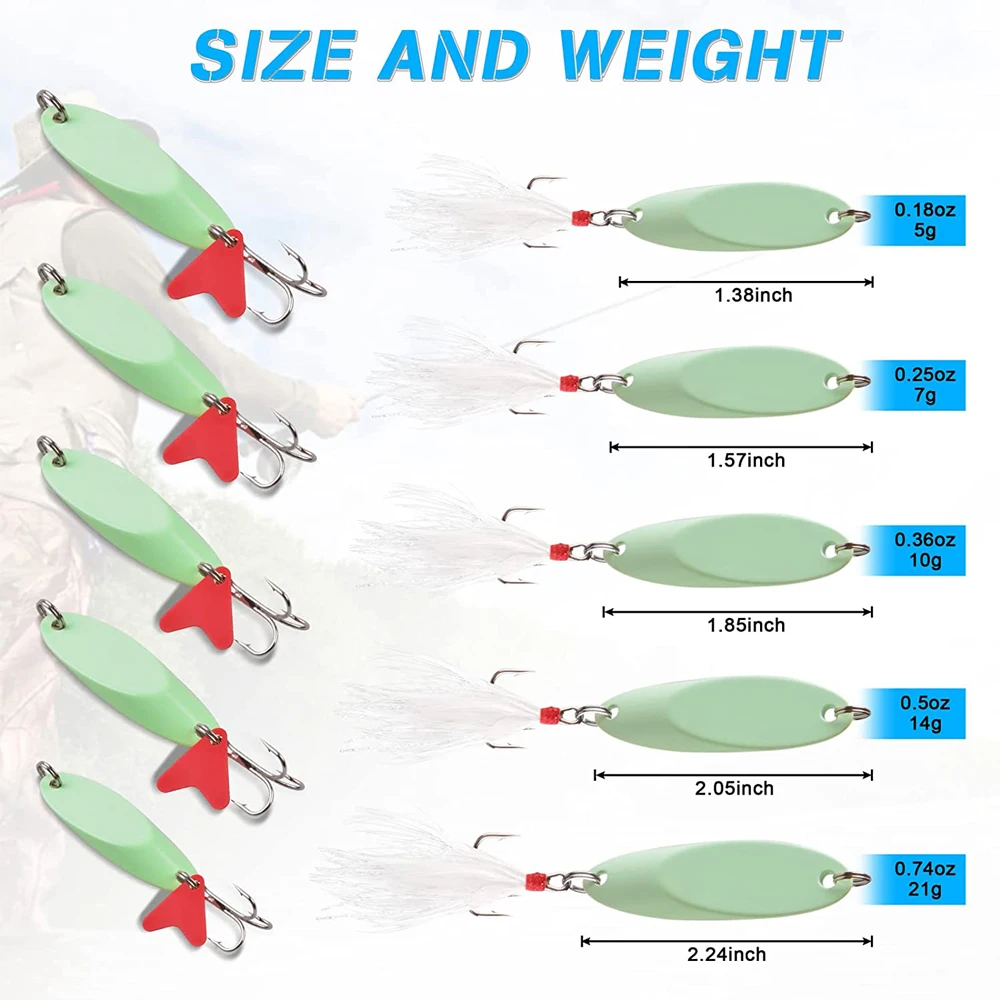 Juego de 10 piezas de señuelos luminosos para pesca, 5g, 7g, 10g, 14g, 21g, cebo Artificial metálico de agua salada para pesca de trucha, Lucio, lubina, Crappie