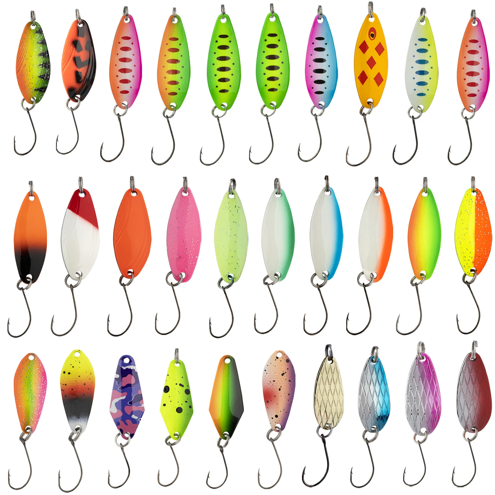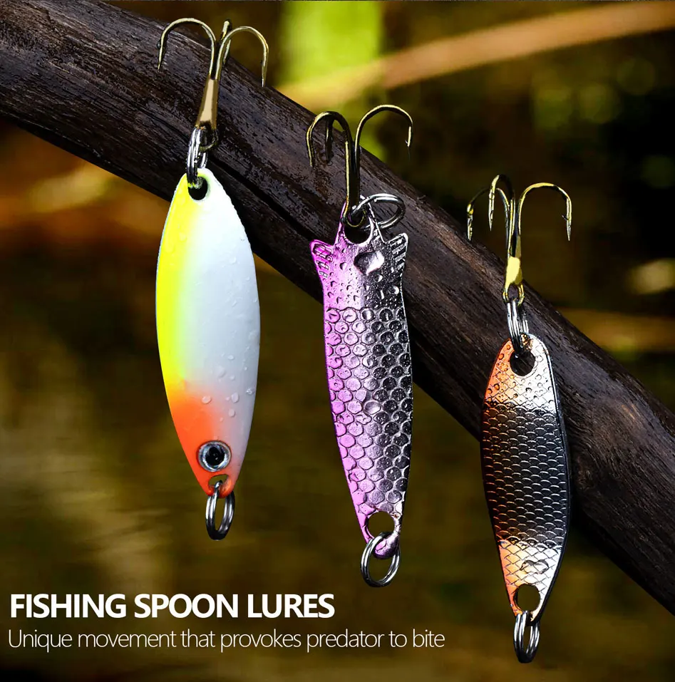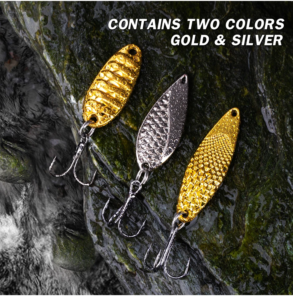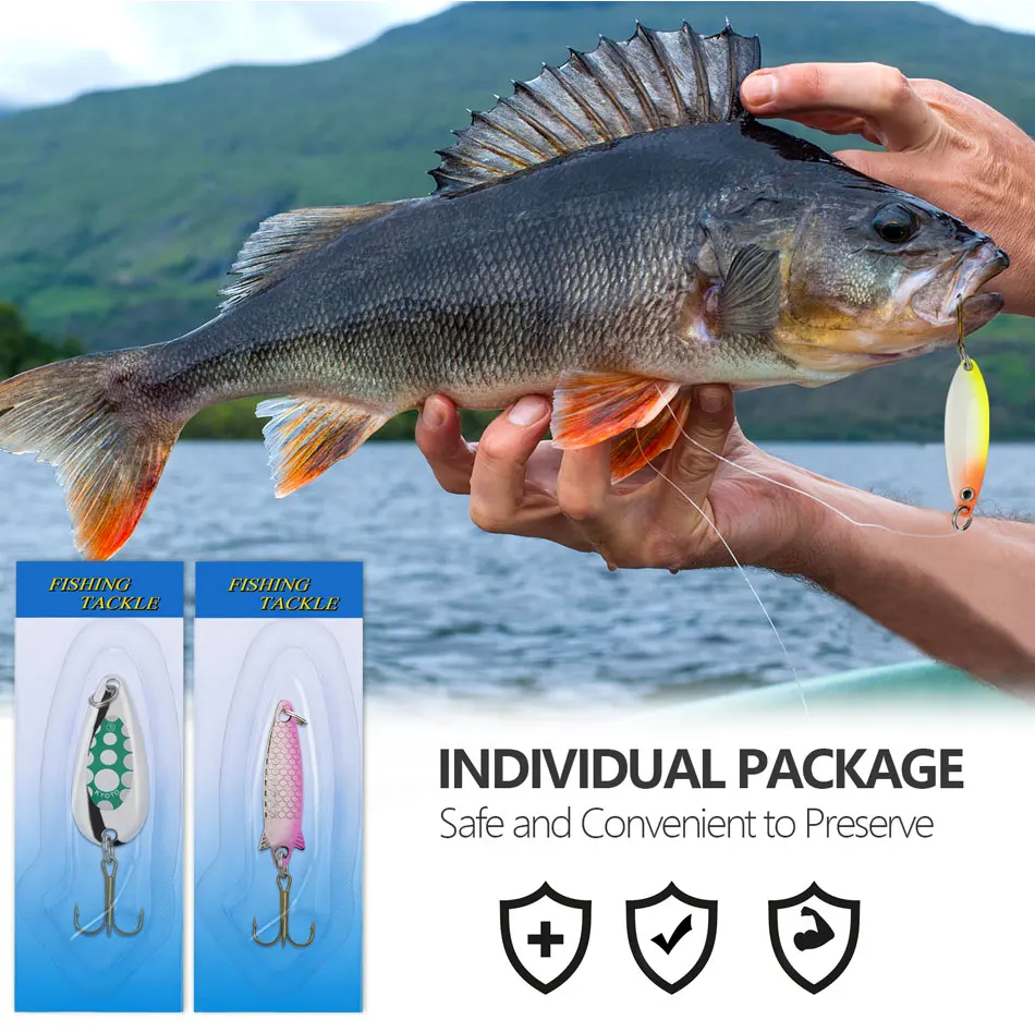 1. Varias cucharas: cada juego de cucharas contiene múltiples formas de cucharas. Diferentes formas caen a diferentes velocidades a través del agua. Las cucharas con diferentes patrones de colores brillantes serán irresistibles para los peces. Una variedad de estilos, gramos y formas disponibles para satisfacer sus diferentes necesidades.