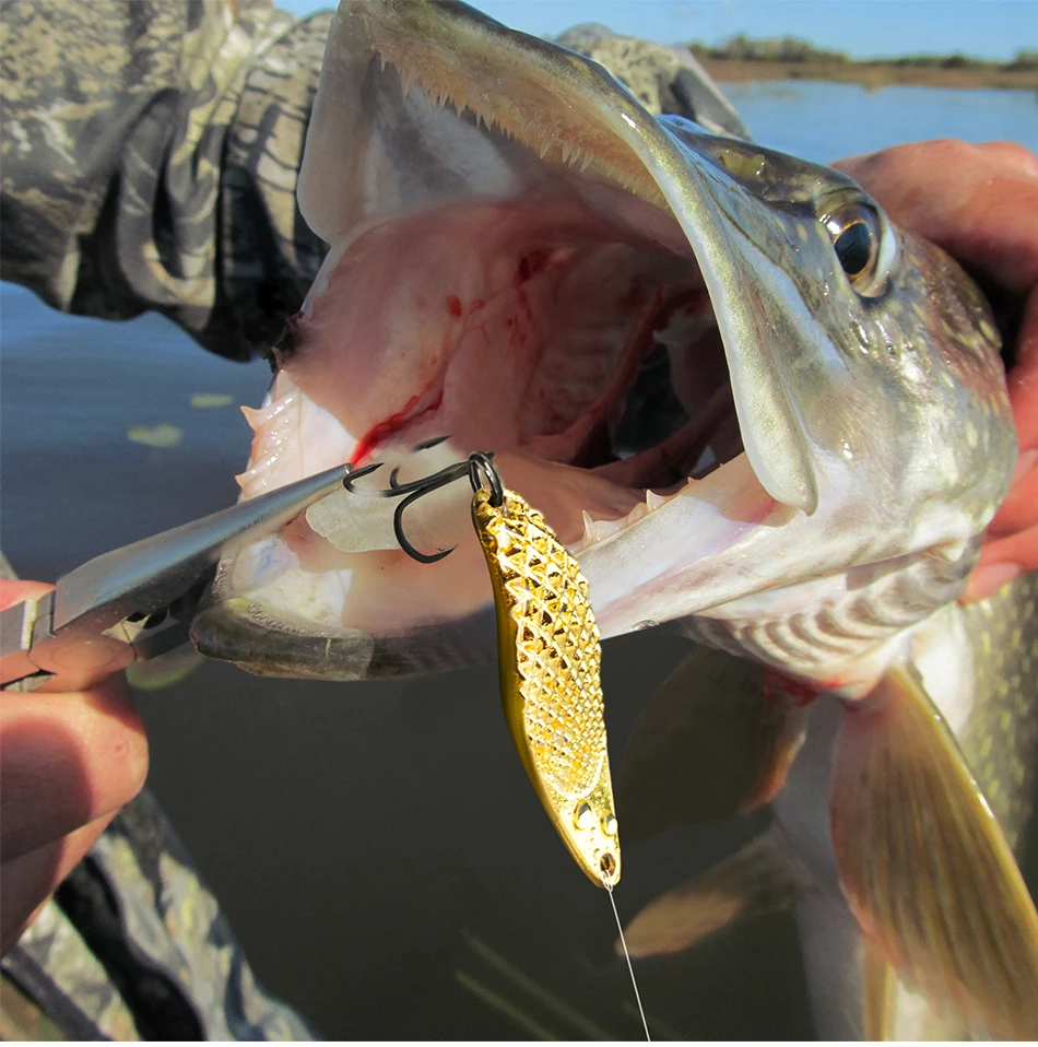 2. Acción de natación vívida: los señuelos de cuchara de diseño exquisito tienen una acción de natación natural y única bajo el agua, suave y se hunde rápidamente. El reflejo de los cebos metálicos bajo el agua lo hace tentador para el ataque de truchas.
