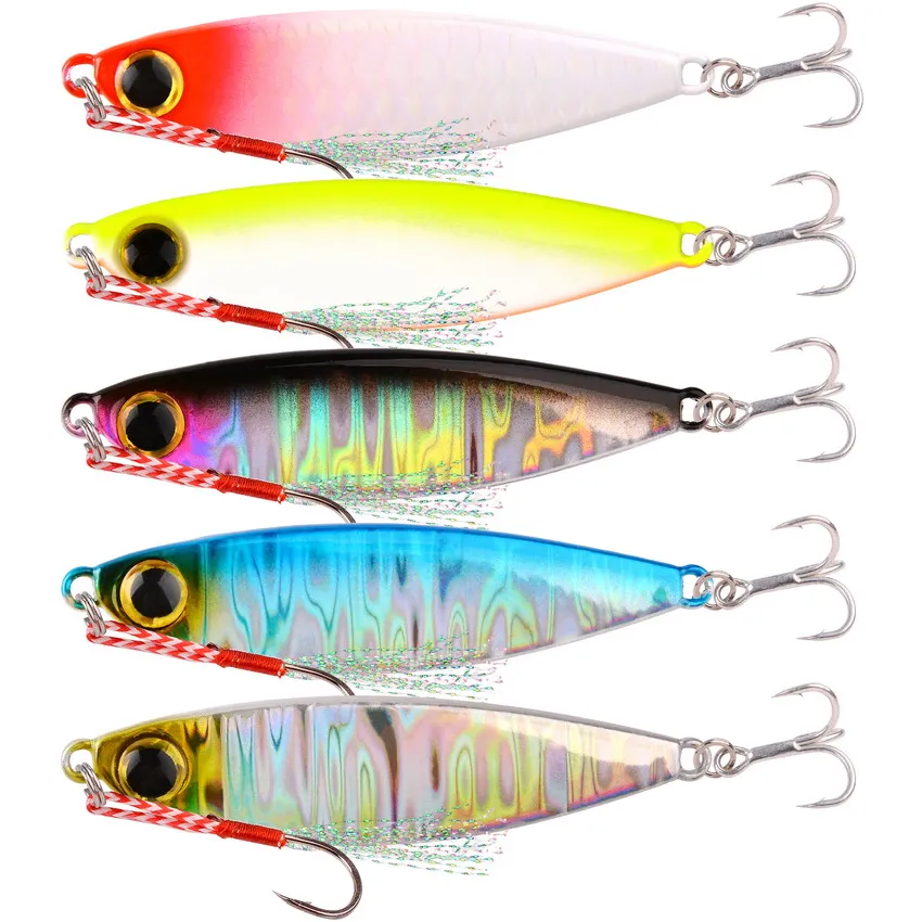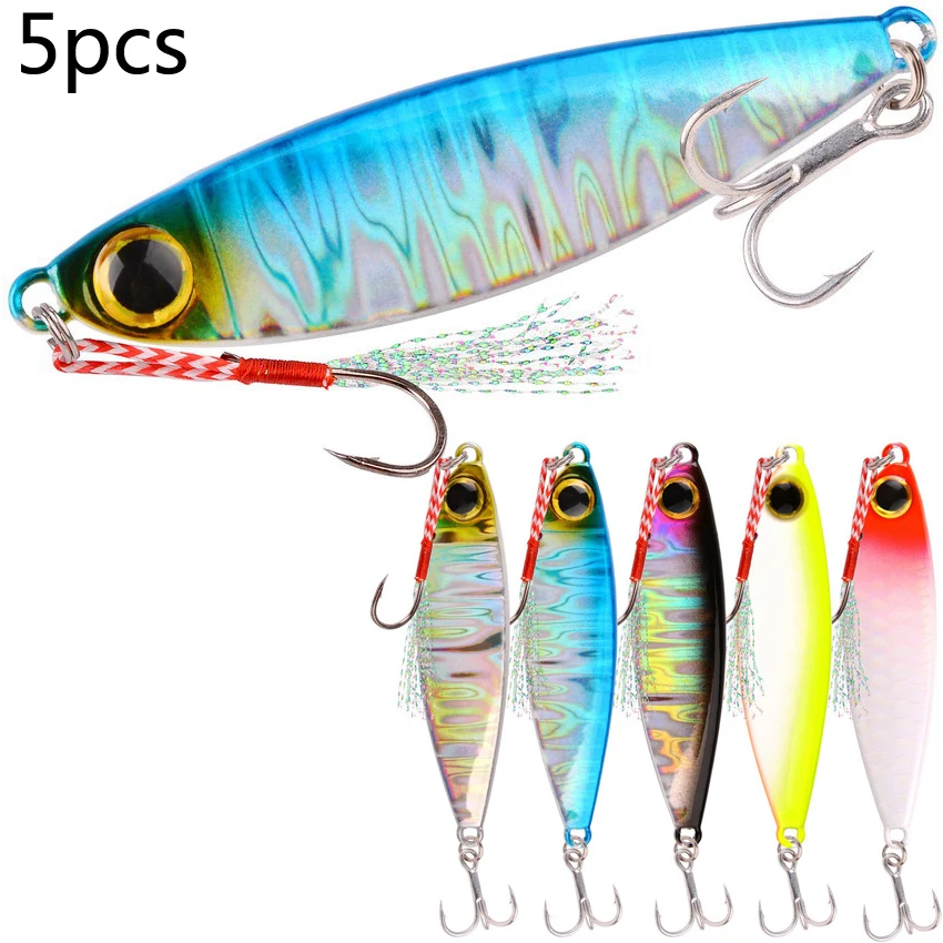 Juego de señuelos de Metal para pesca en el mar, Set de anzuelos de 15g, cuchara de fundición lenta, cebo Artificial, lote de 5 unidades