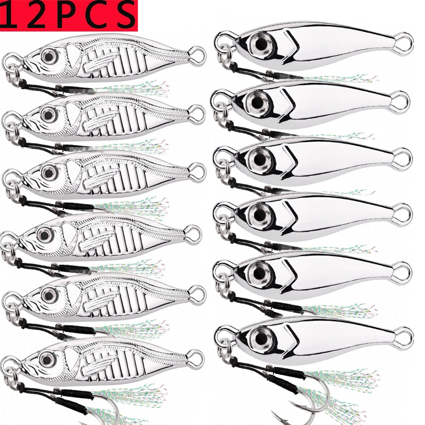 Juego de señuelos de Metal para pesca en el mar, Set de señuelos de Metal con impresión 3D de Little Jack VIB, plantilla de Metal lenta, trucha, atún, lubina, fundición a tierra, cuchara de Jigging, 12 piezas