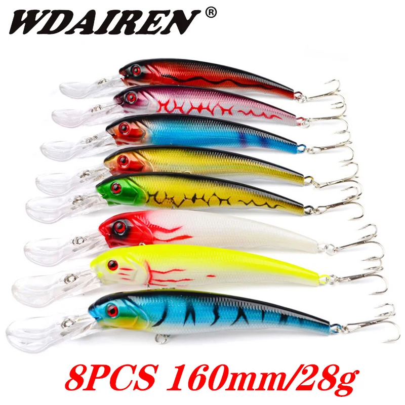 Juego de 10 Señuelos de Pesca de colores mezclados 16cm 28g Wobblers grandes de Minnow cebo duro de lubina Artificial de pesca con curricán