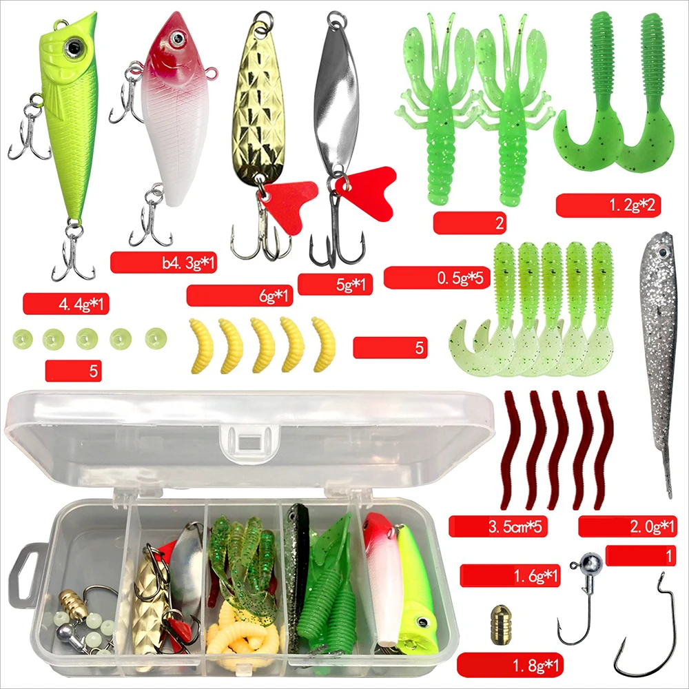 Este juego de Señuelos de Pesca viene con 18/21/59/142 piezas de señuelos mixtos, proporcionando una amplia gama de opciones para diferentes situaciones de pesca.
