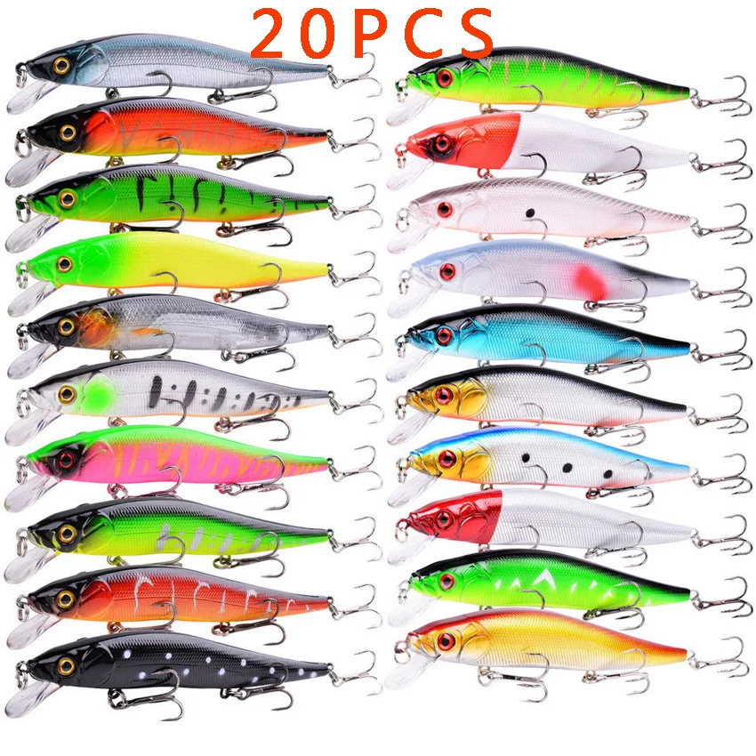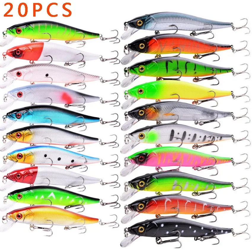 Juego de Señuelos de Pesca de 20 piezas, cebo Artificial, ojos 3D, aparejos Wobblers de plástico, sistema magnético de fundición lejana