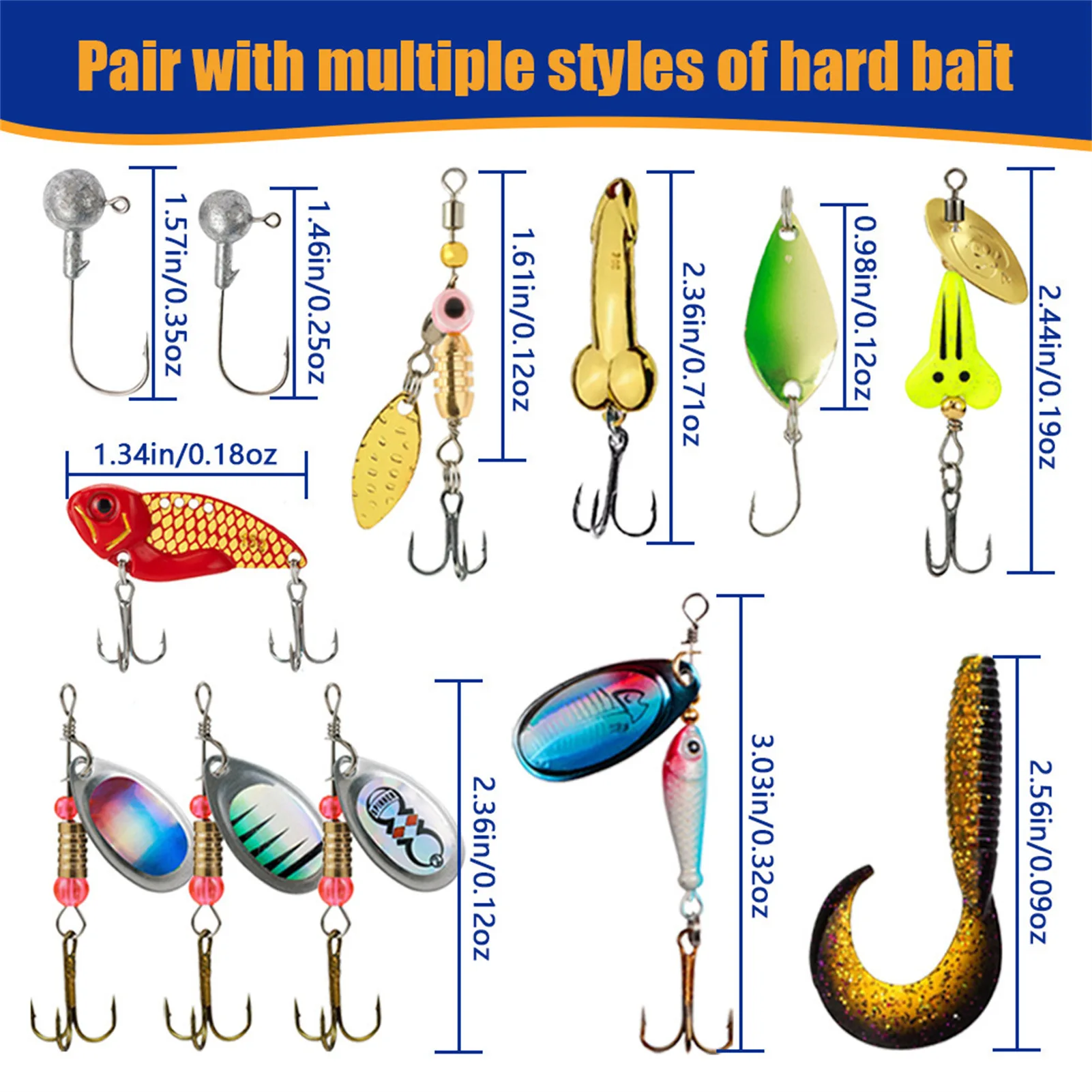 Variedad de tipos de señuelos: este juego de señuelos de pesca de 24 piezas incluye cuchara, spinner, lápiz y cebos blandos, lo que brinda a los pescadores múltiples opciones para apuntar a diferentes especies de peces tanto en ambientes de agua dulce como salada.