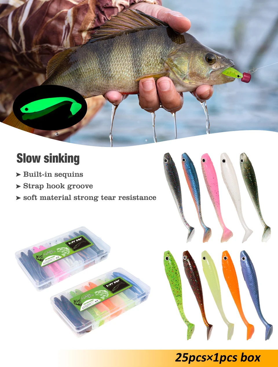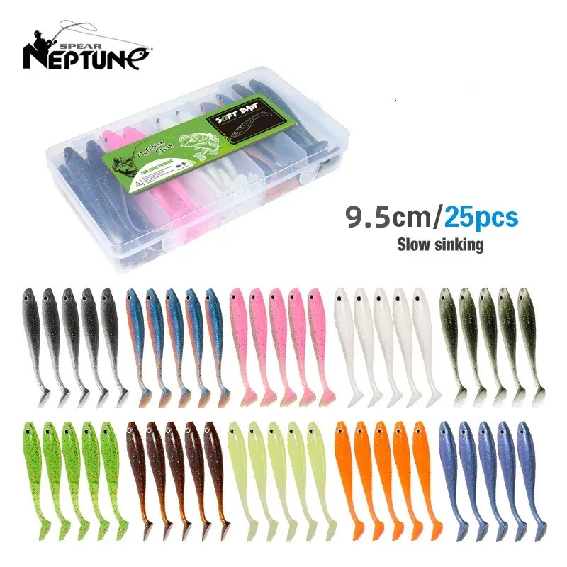 Juego de Señuelos de Pesca de 25 uds., 95mm, pez blando, Swimbait falso para curricán, Wobbler, Kit de cebo de silicona, pesca en el mar, depredador, Lucio, señuelo para trucha