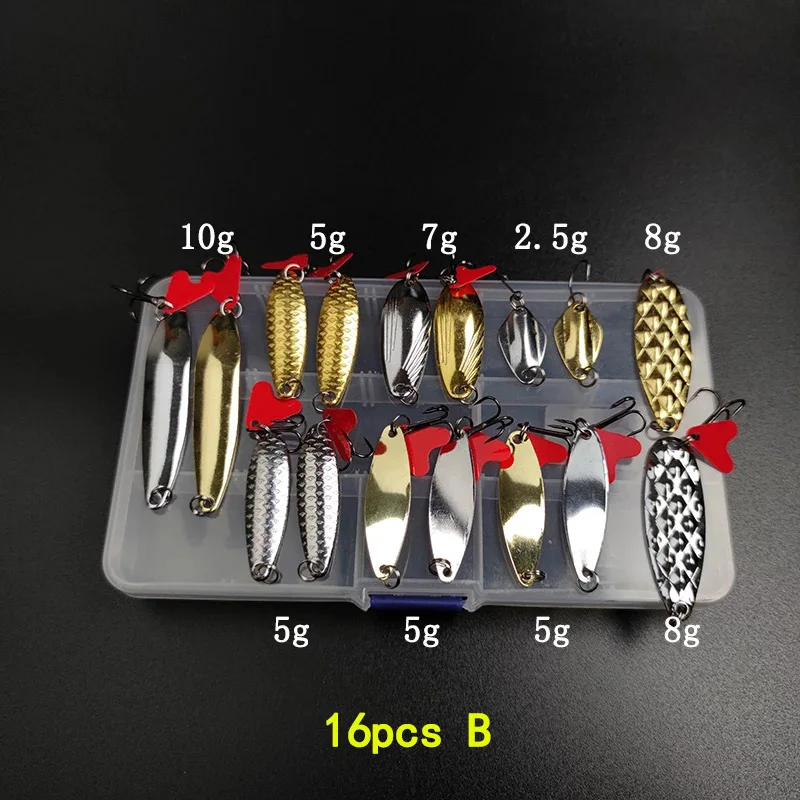 Juego de Señuelos de Pesca de 2g/4g/6g/8g/12g, juego de Señuelos de Cuchara Mixtas, Señuelos de Pesca Spinnerbait, Señuelos de Pesca en Mar, Señuelo de Metal de Agua Salada