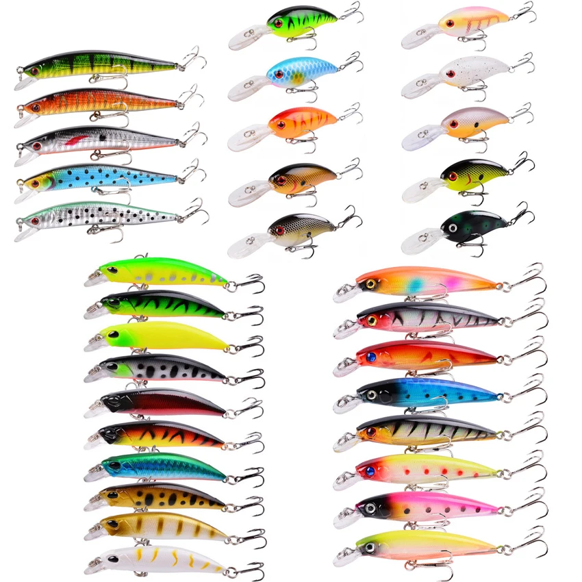 Juego de Señuelos de Pesca de 33 piezas, cebos duros de manivela biónica Artificial, Crankbait Wobblers