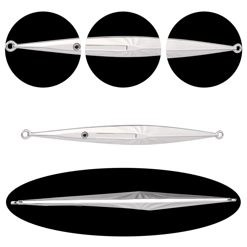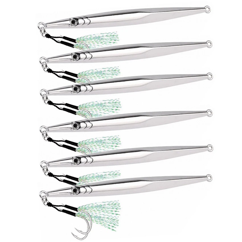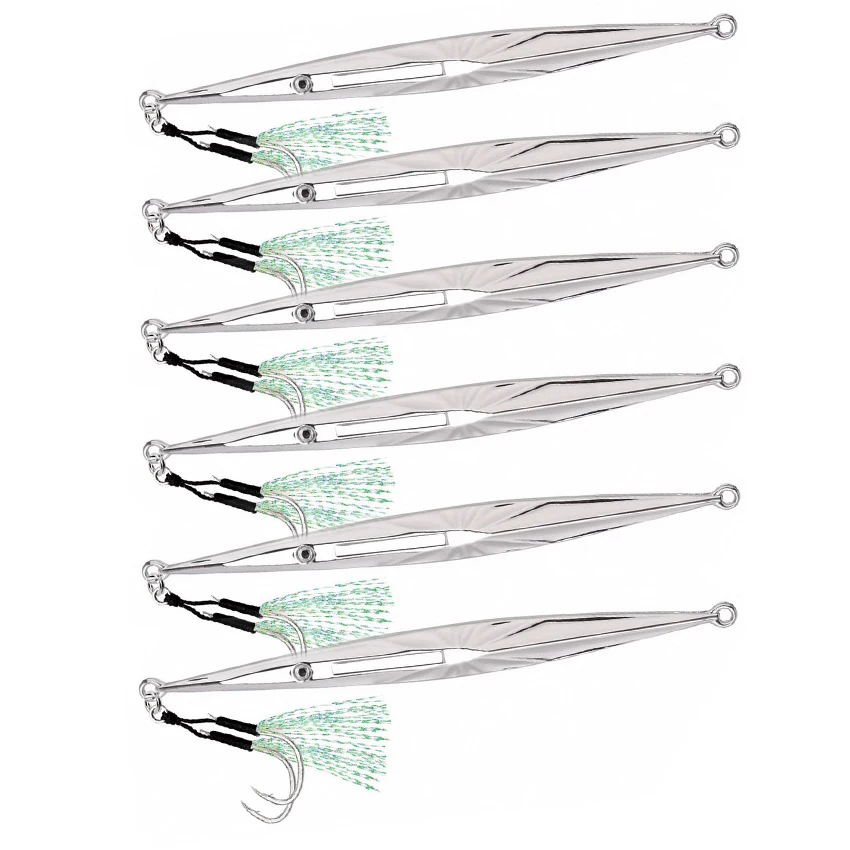 Juego de Señuelos de pesca de aguas profundas, plantillas de Metal de 6 uds., 60g, 80g, tira larga, pez de dibujo rápido, hundimiento rápido, señuelo de pesca de vibración lenta